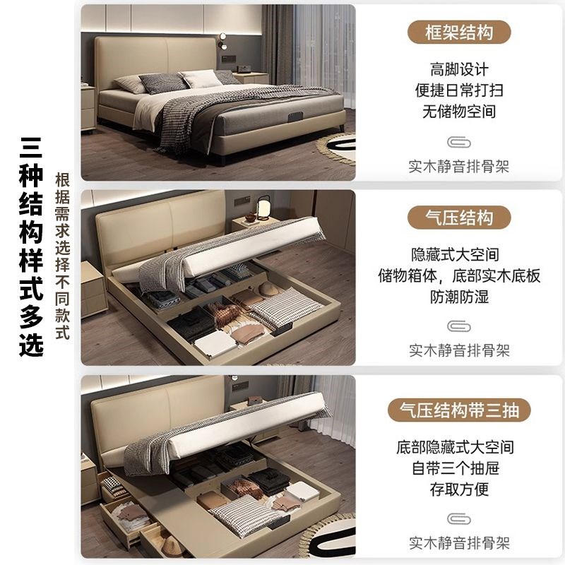 意式极简超薄床头现代简约双人床小户型主卧储物复古真皮床收纳床