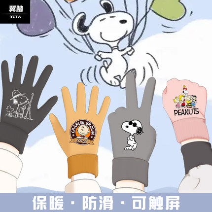 史努比查理布朗联名手套麂皮绒男女学生情侣分指骑行车防风保暖款