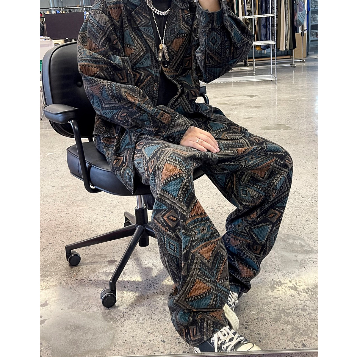 Medaigual 民族风印花宽松锥形小脚裤男街头滑板小众复古牛仔长