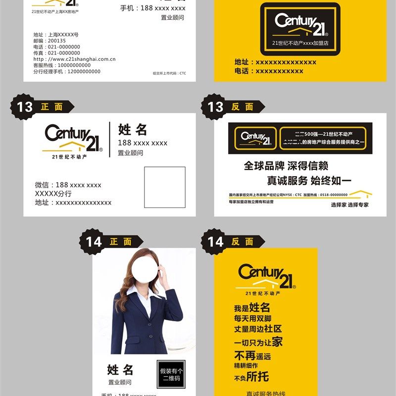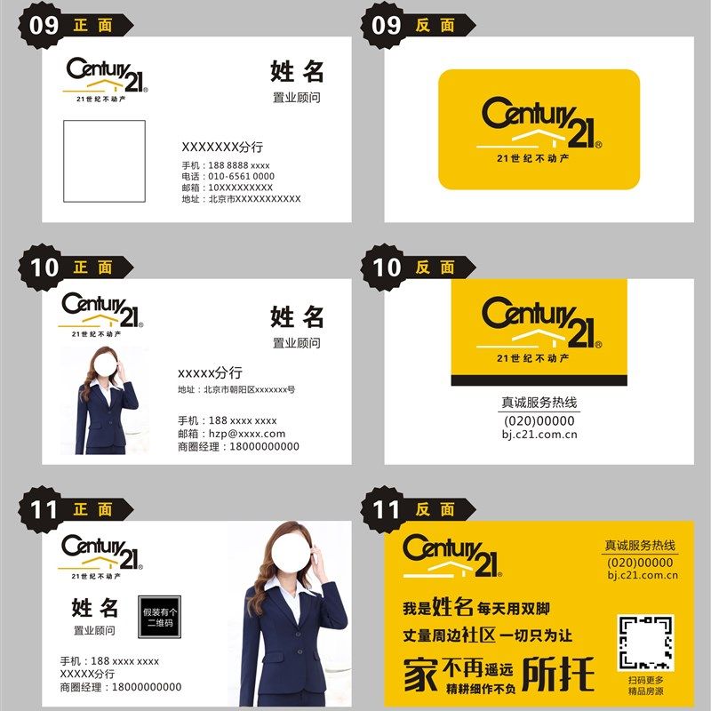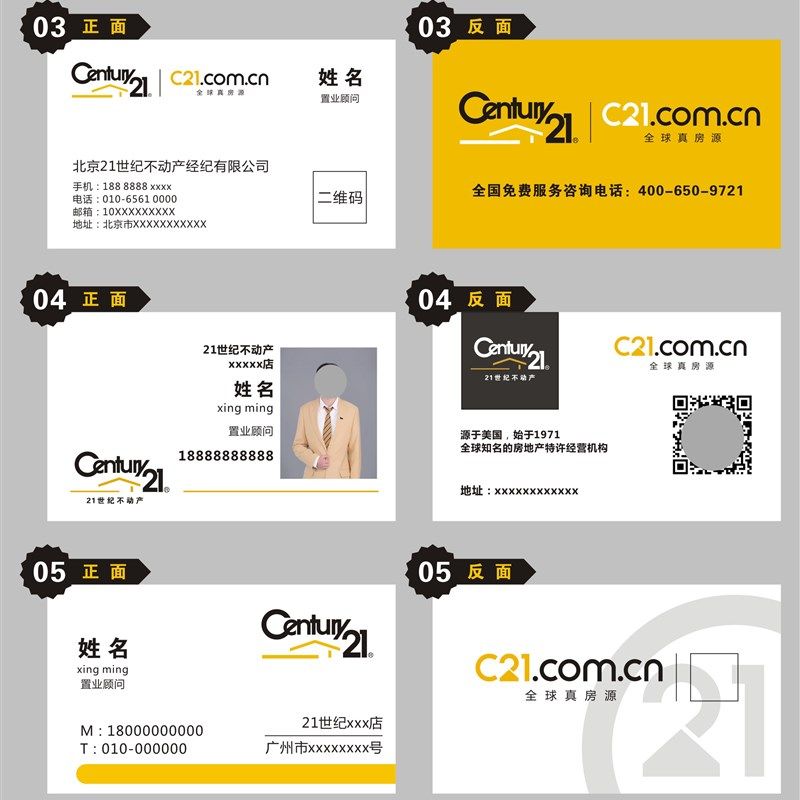 21世纪不动产名片双面覆膜圆角制作设计地产置业顾问名片定制
