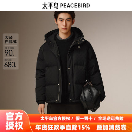 太平鸟男装羽绒服25冬季新款90白鸭绒面包服立体提花保暖外套潮