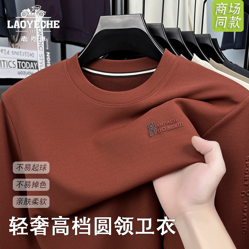 老爷车男士圆领卫衣秋季新款轻奢高档长袖T恤中年体恤打底衫上衣