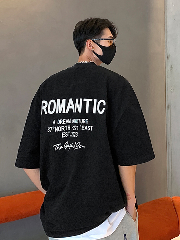 特大码300斤重磅短袖t恤男夏季美式复古宽松潮牌潮流纯棉正肩半袖