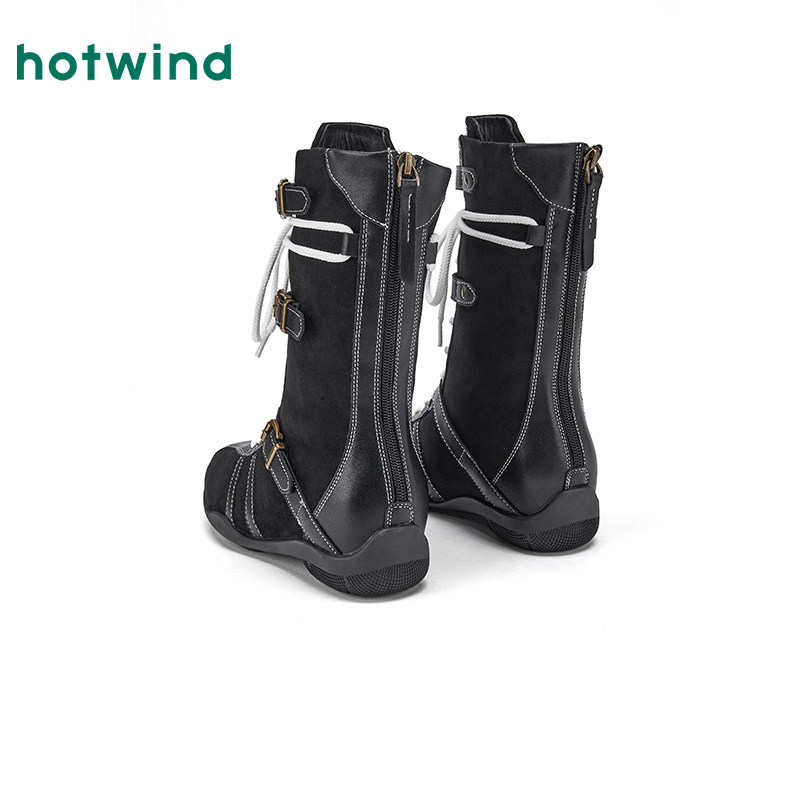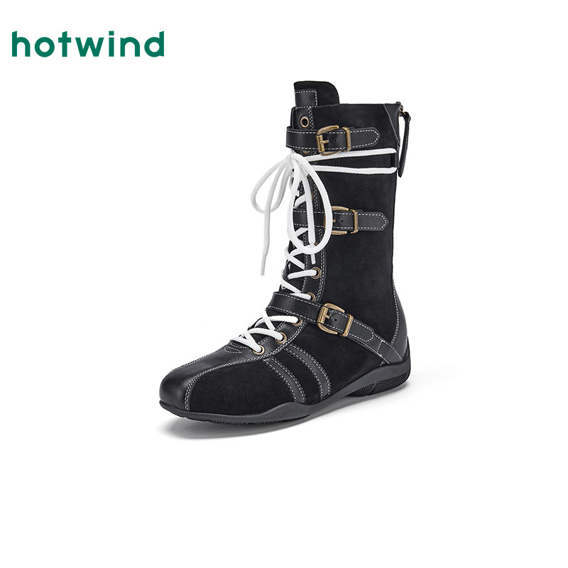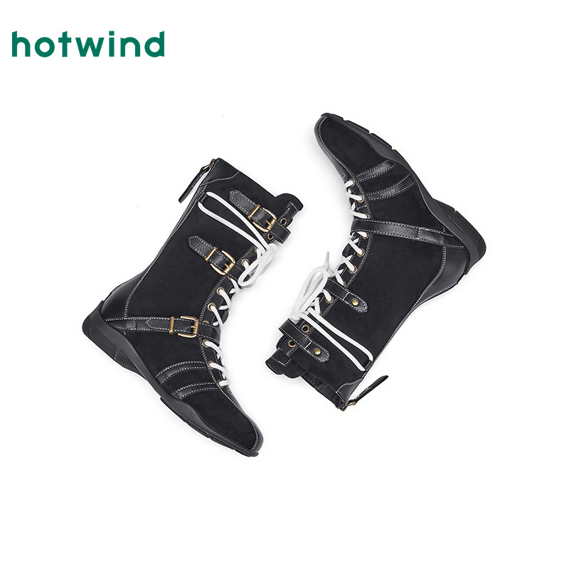 热风复古拳击靴女款2025年冬季新款美拉德中筒靴子显瘦马丁靴女鞋