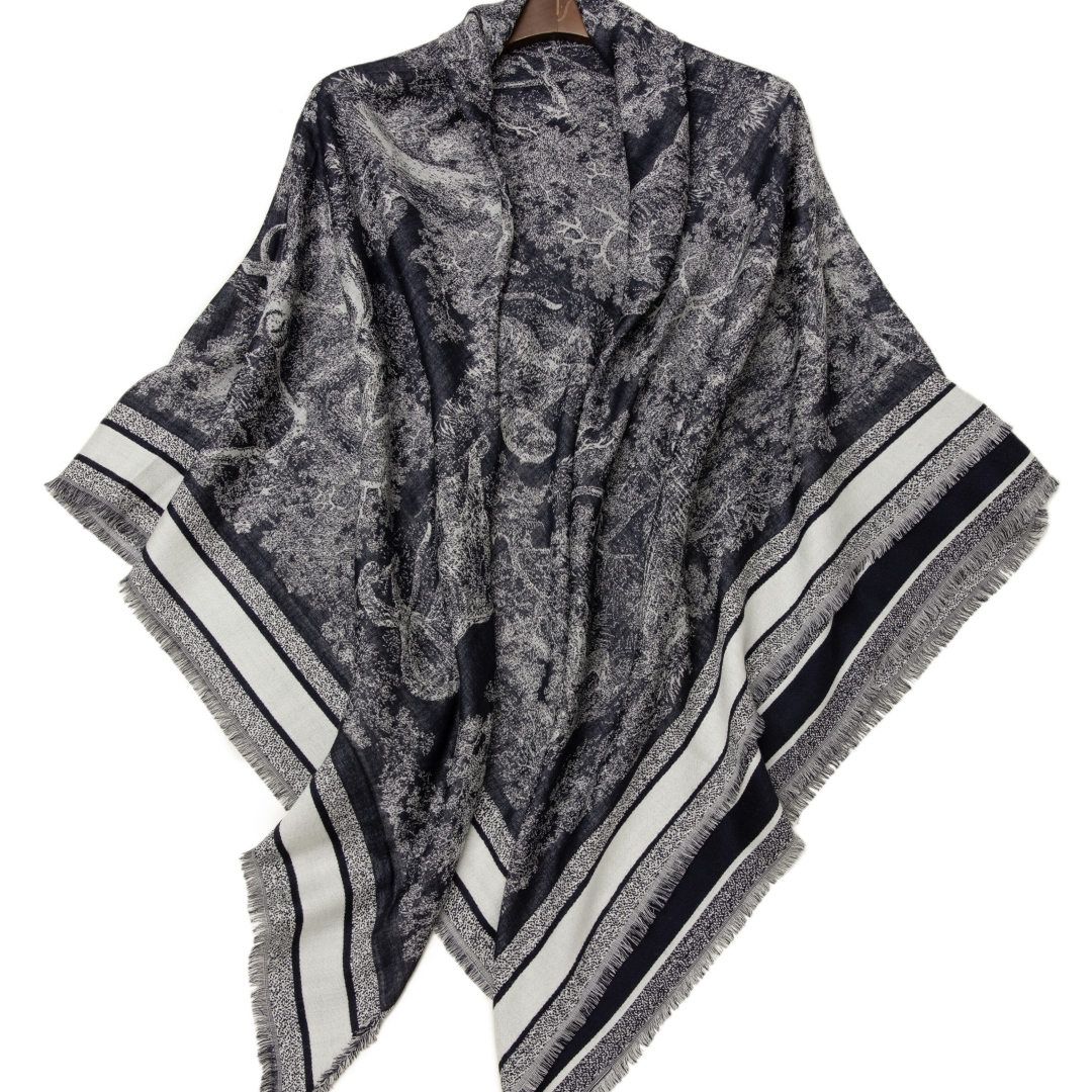 新品欧单春秋季中厚款真丝羊毛大方巾空调房围巾披肩两用保暖围脖