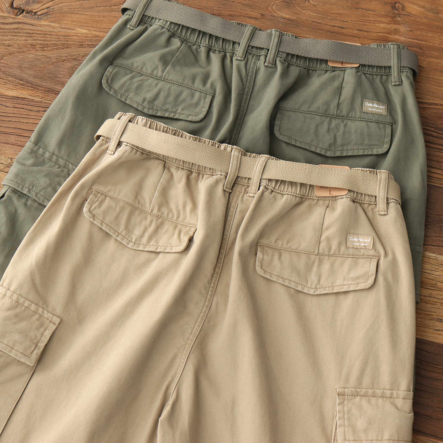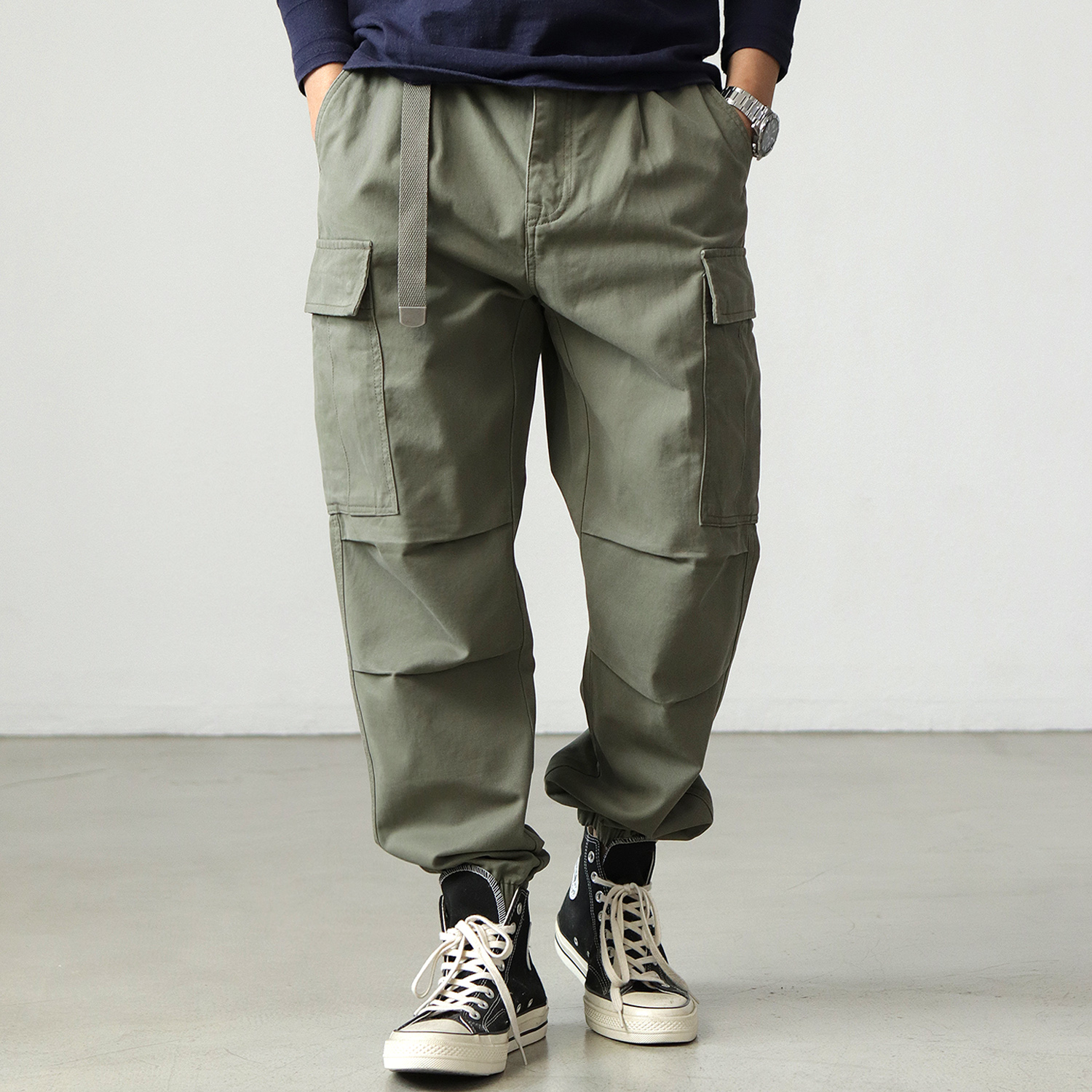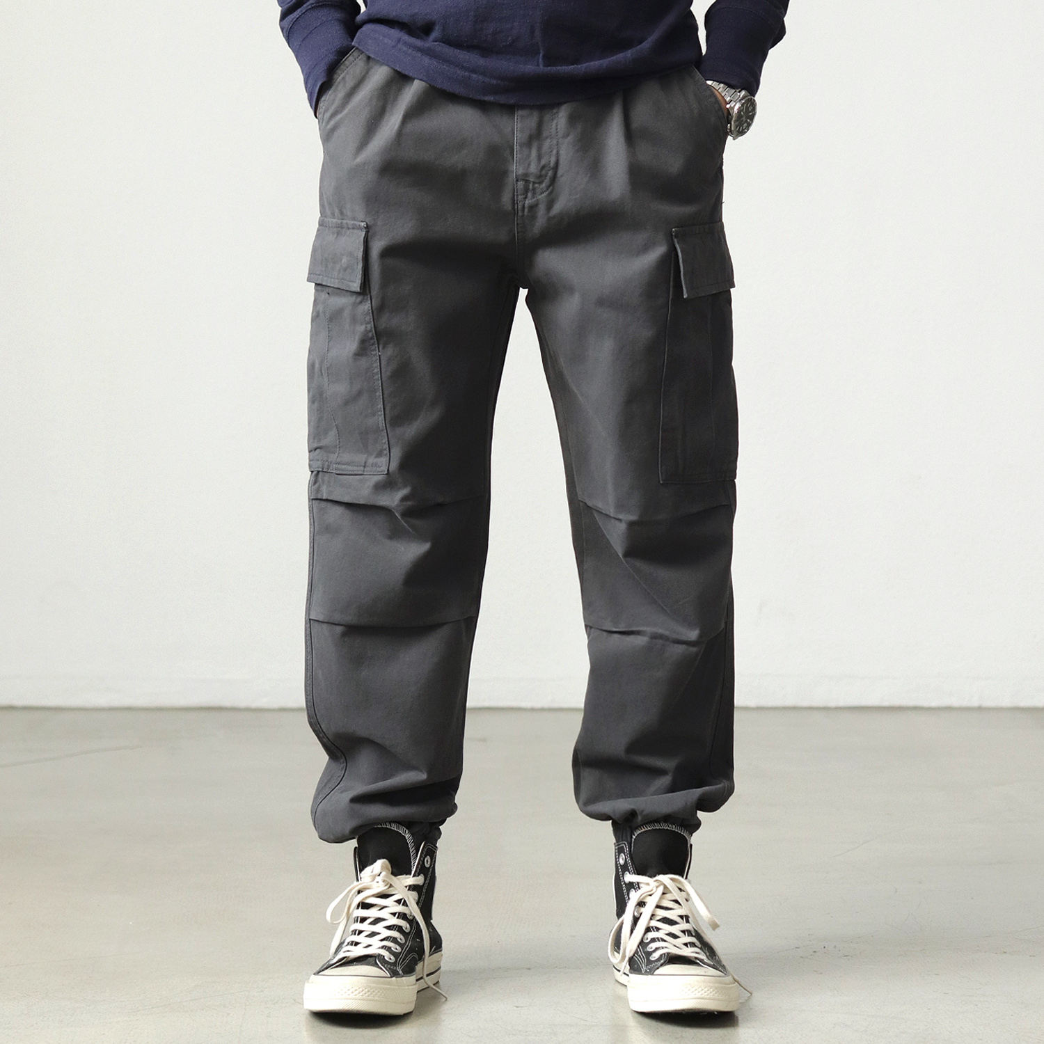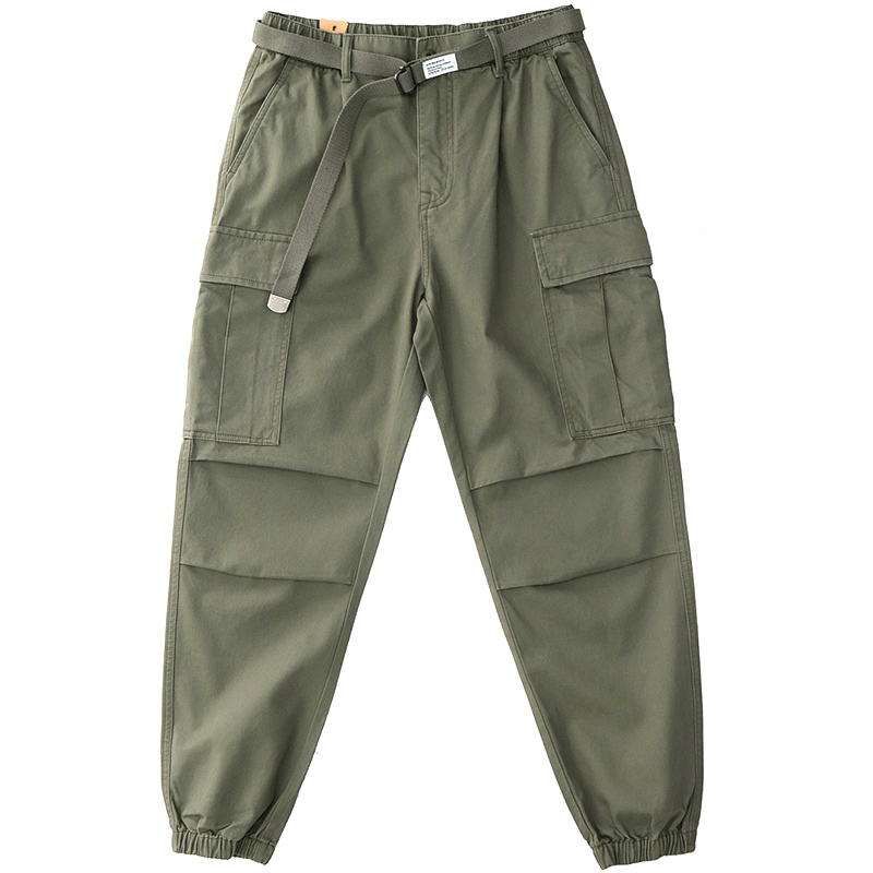 附腰带束脚工装裤男纯棉水洗美式复古宽松锥形休闲多袋伞兵裤春秋