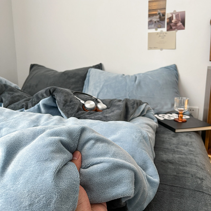 A类牛奶绒被套四件套床上用品被罩床单加厚珊瑚绒保暖三件套床笠4