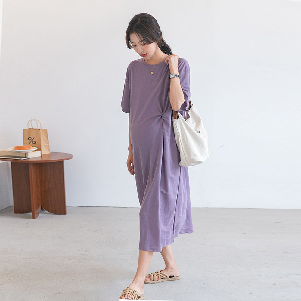 凉快~孕妇装夏装铜氨丝连衣裙显瘦大码宽松薄款孕期长裙T恤孕妇裙