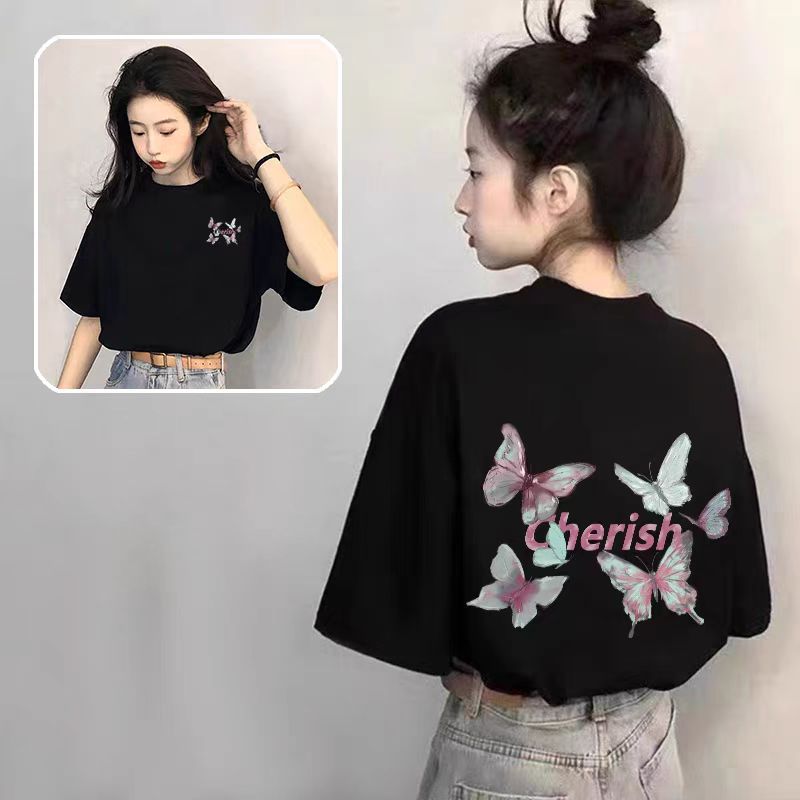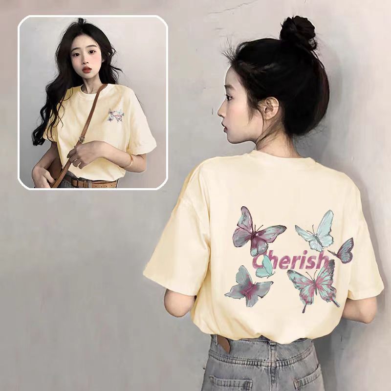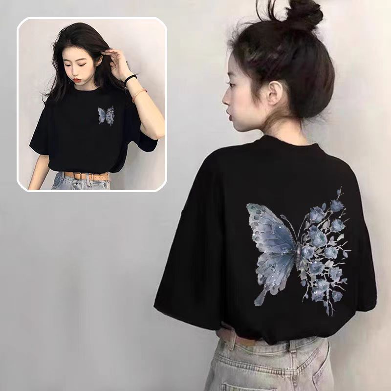 蝴蝶纯棉白色短袖t恤女2025新款爆款夏季宽松高级感半袖体恤上衣