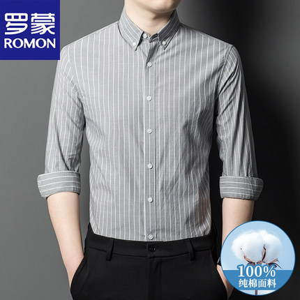 罗蒙2025春秋季100%纯棉长袖衬衫