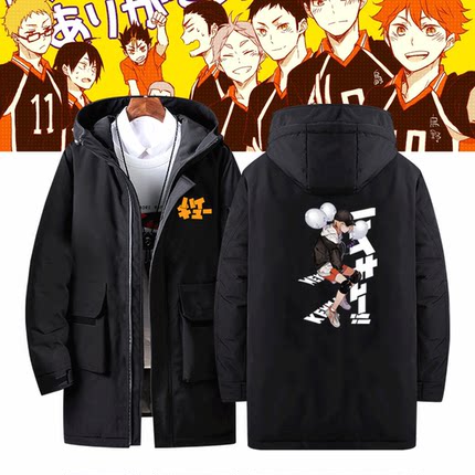 排球少年动漫孤爪研磨周边男女青年秋冬可定制连帽外套情侣羽绒服