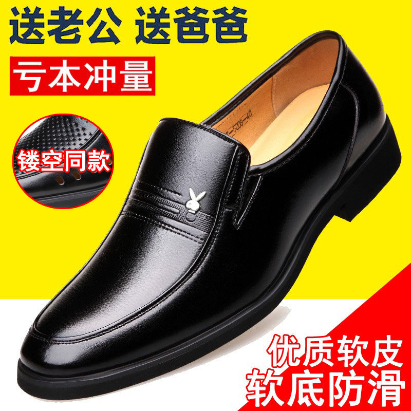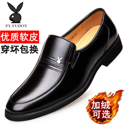 2025冬季商务正装休闲皮鞋男士真皮软底防滑黑色加绒防滑爸爸皮鞋