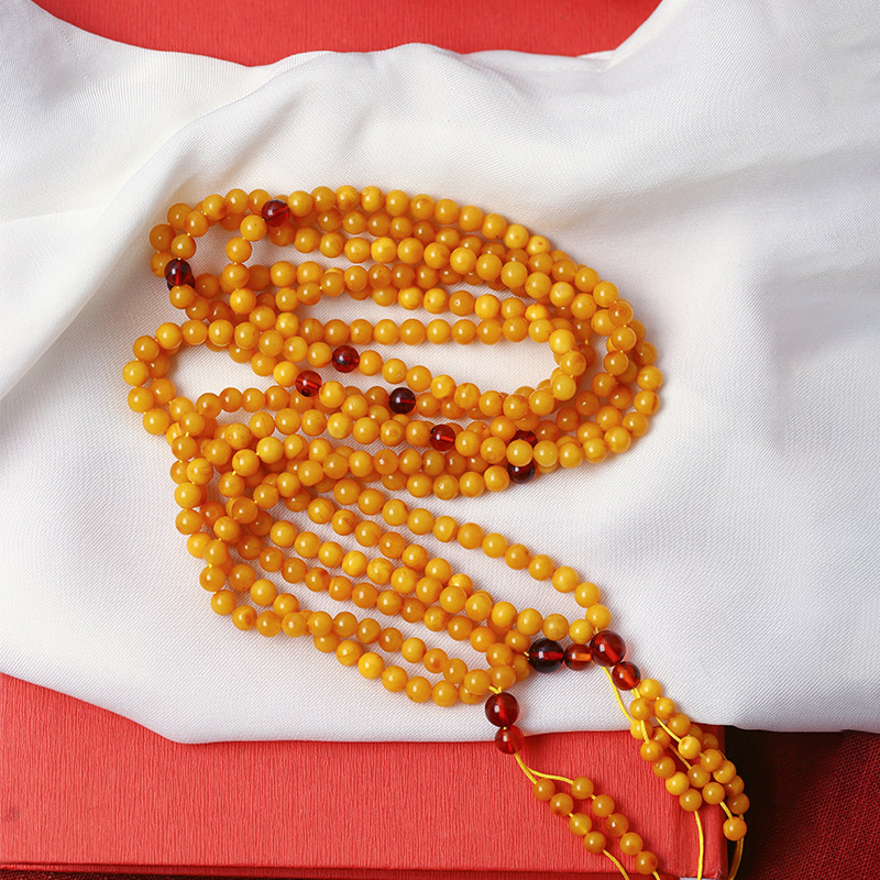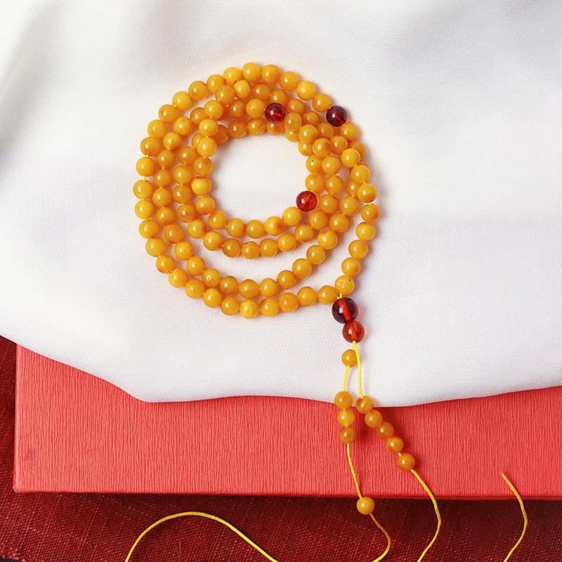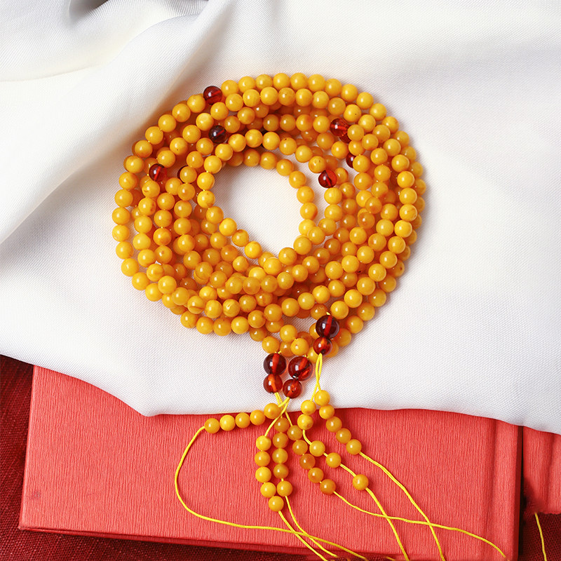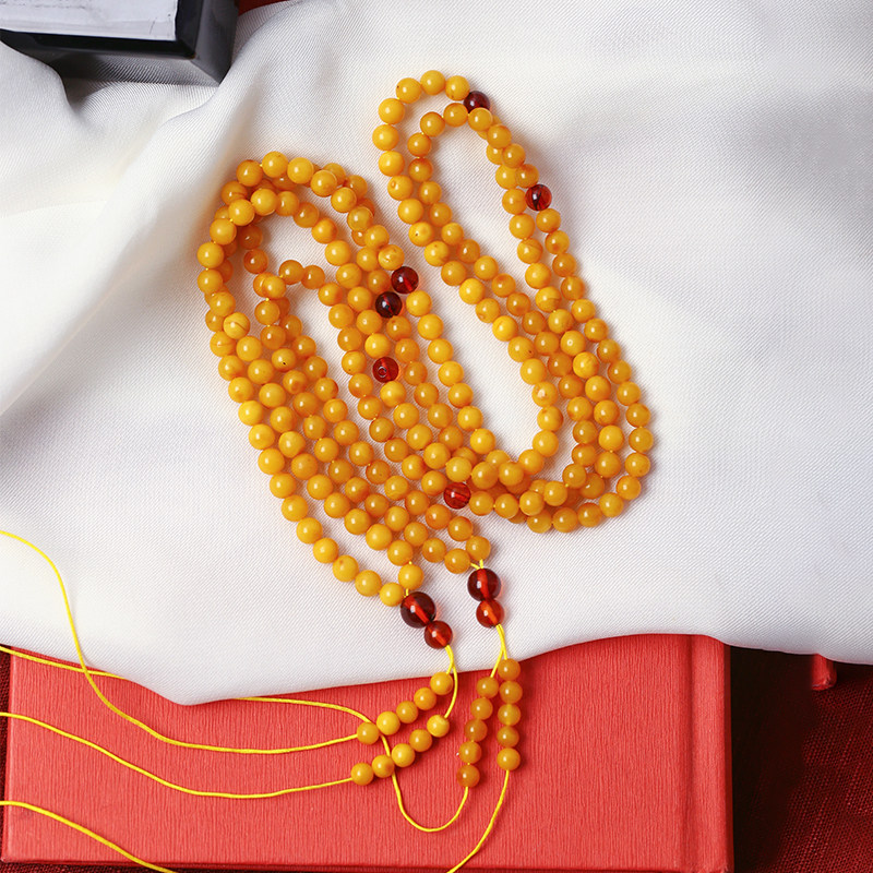 天然蜜蜡老蜜蜡圆珠款手链佛珠链 男女款琥珀蜜蜡项链手串饰品