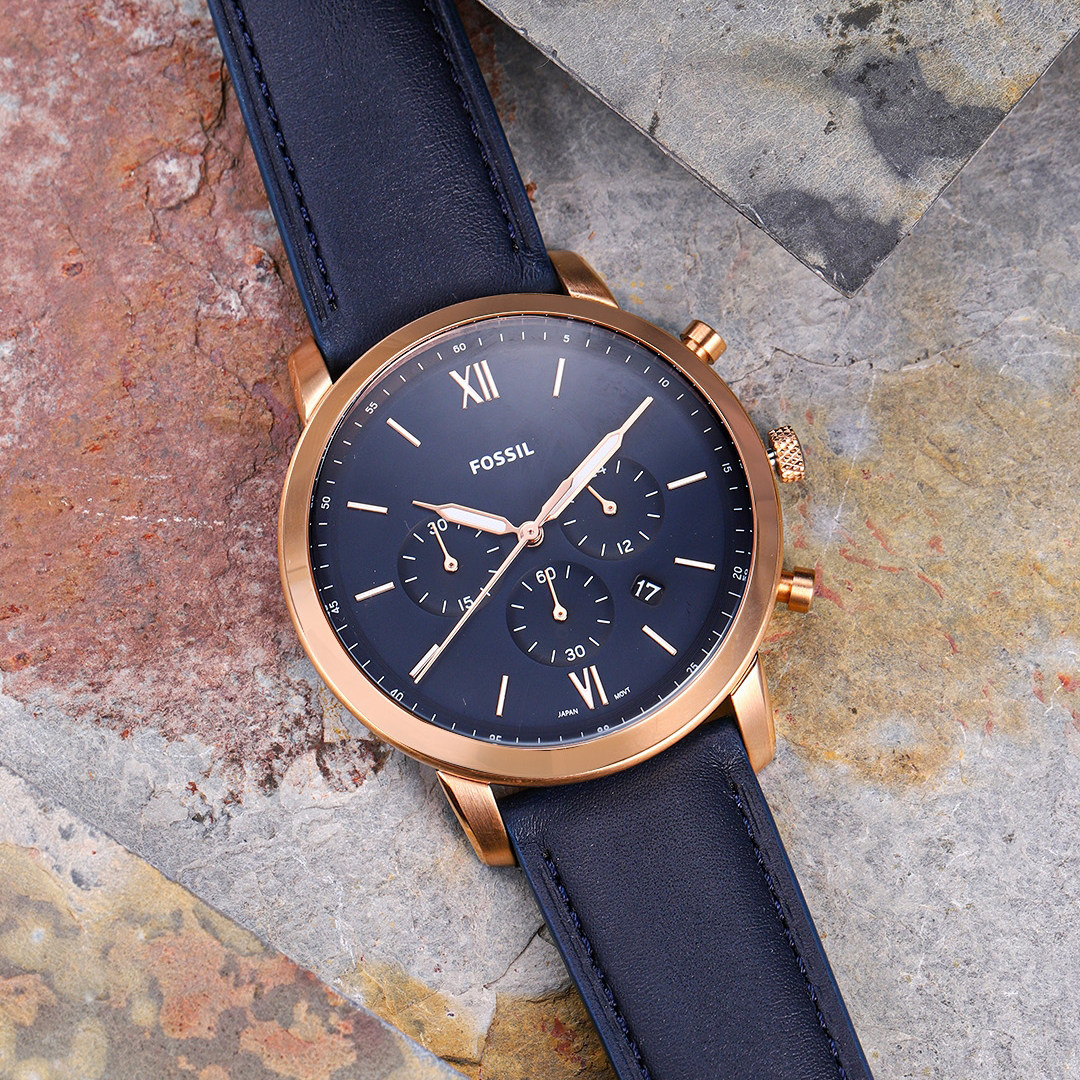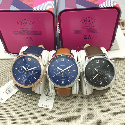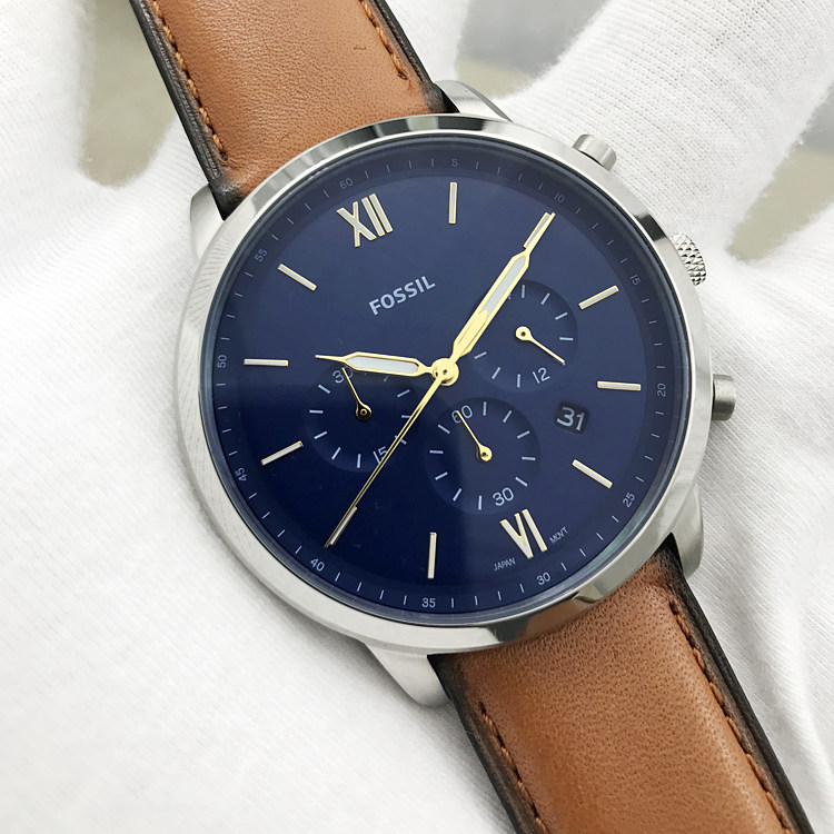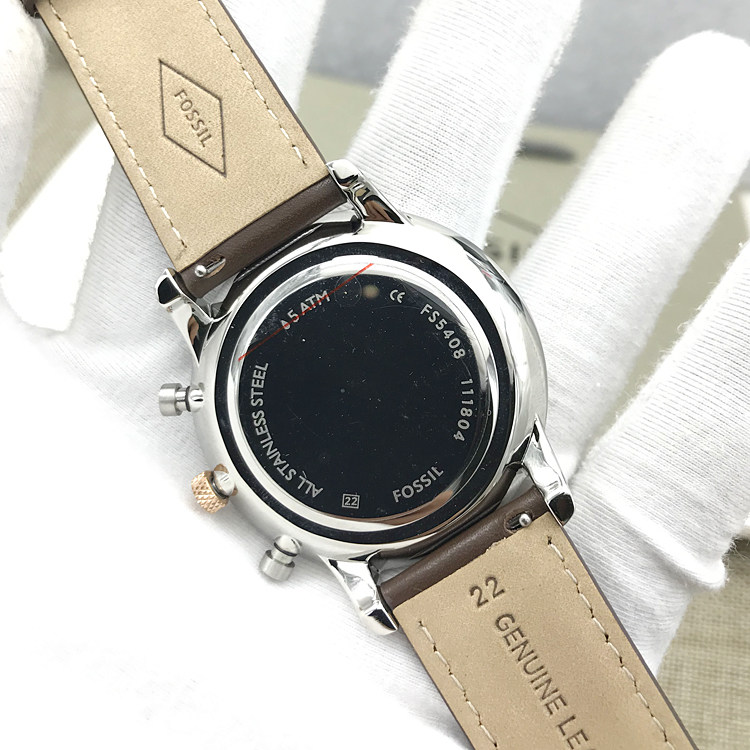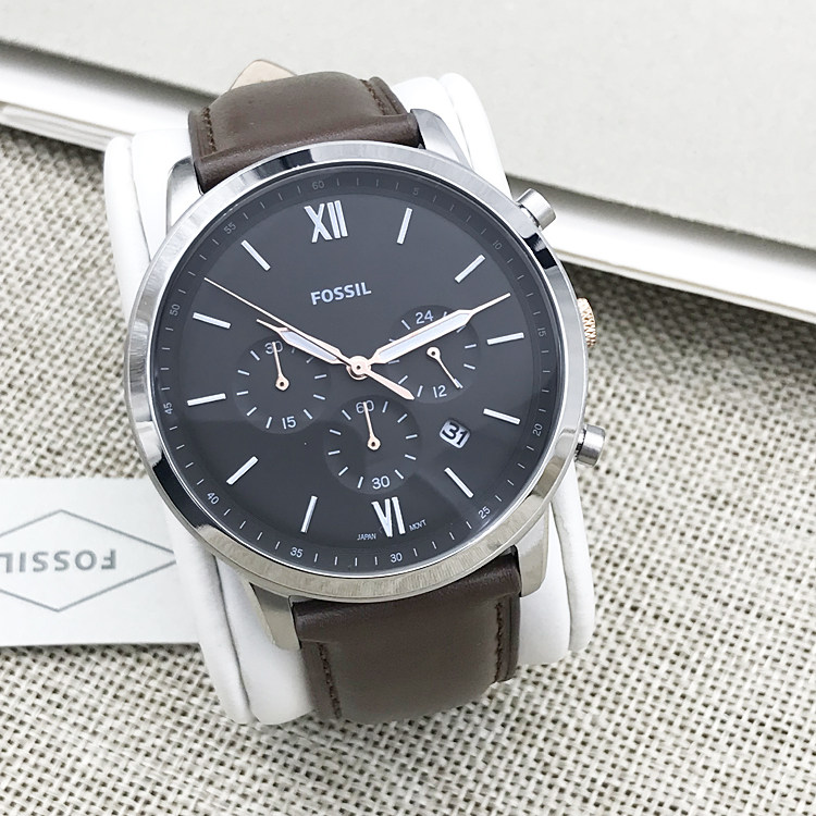 FOSSIL手表轻奢潮流真皮表带三眼计时石英表商务休闲防水男表