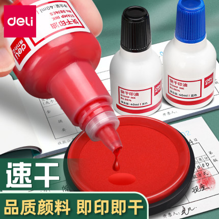 得力速干印油印泥红色专用油原子光敏印章加印快干盖章秒干补充液办公财务发票清洁签字公章大瓶油墨黑色蓝色