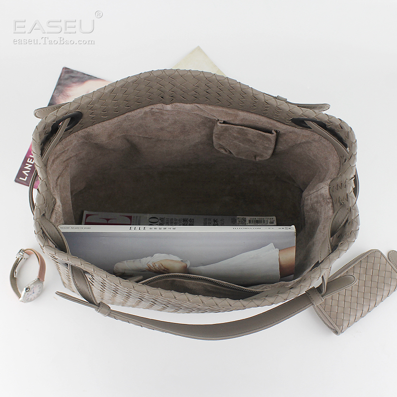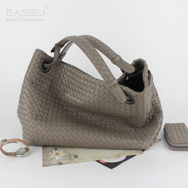 Easeu 2022秋冬新款真皮羊皮女士手提编织包欧美时尚休闲百搭女包