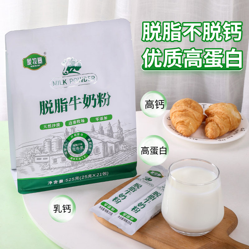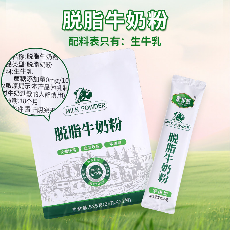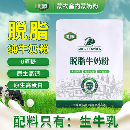 内蒙古牛奶粉525克无蔗糖脱脂老少皆宜女士低脂独立包装高钙