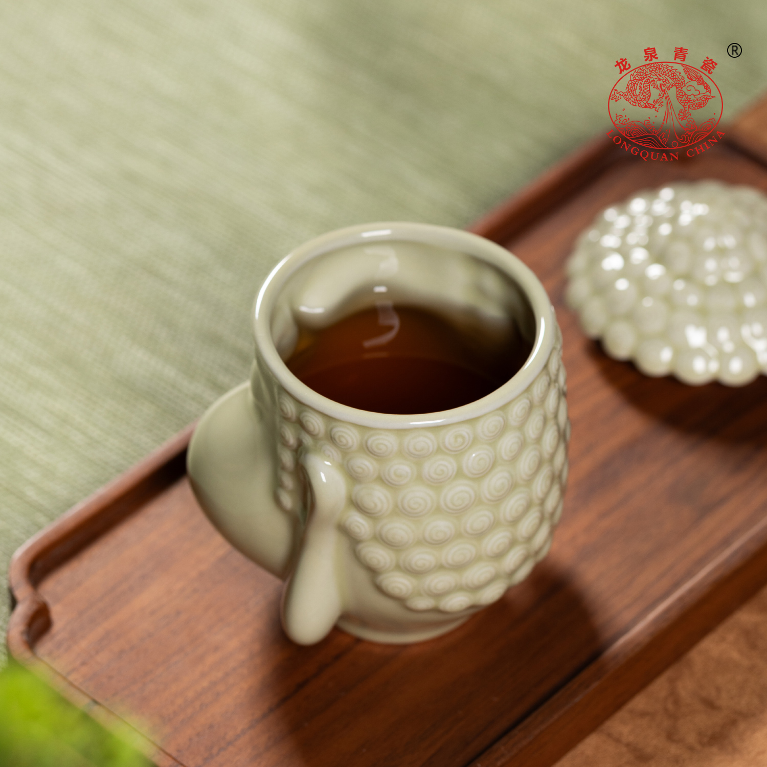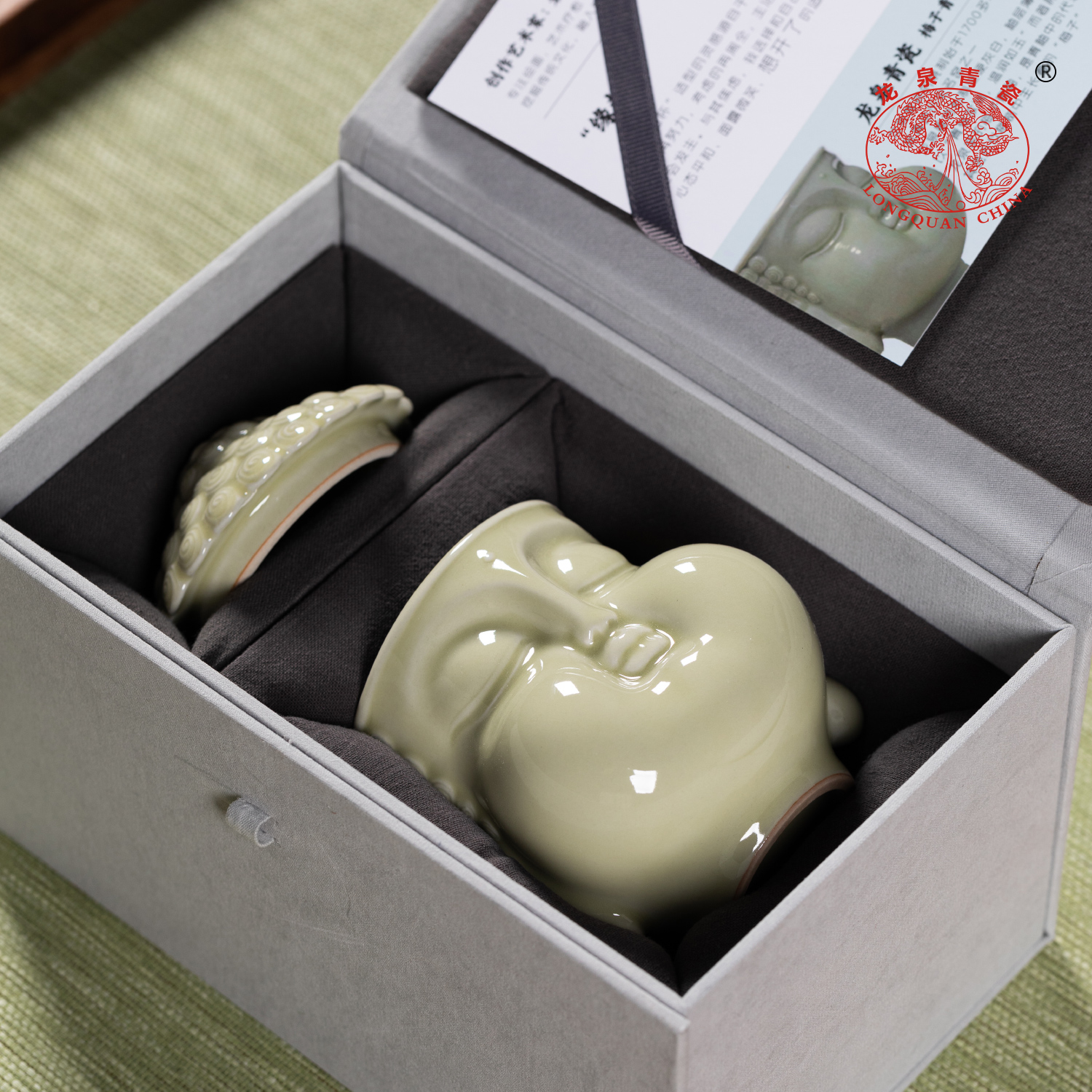 龙泉青瓷喝水杯子我佛瓷杯马克杯创意带盖办公室佛头水杯礼物杯