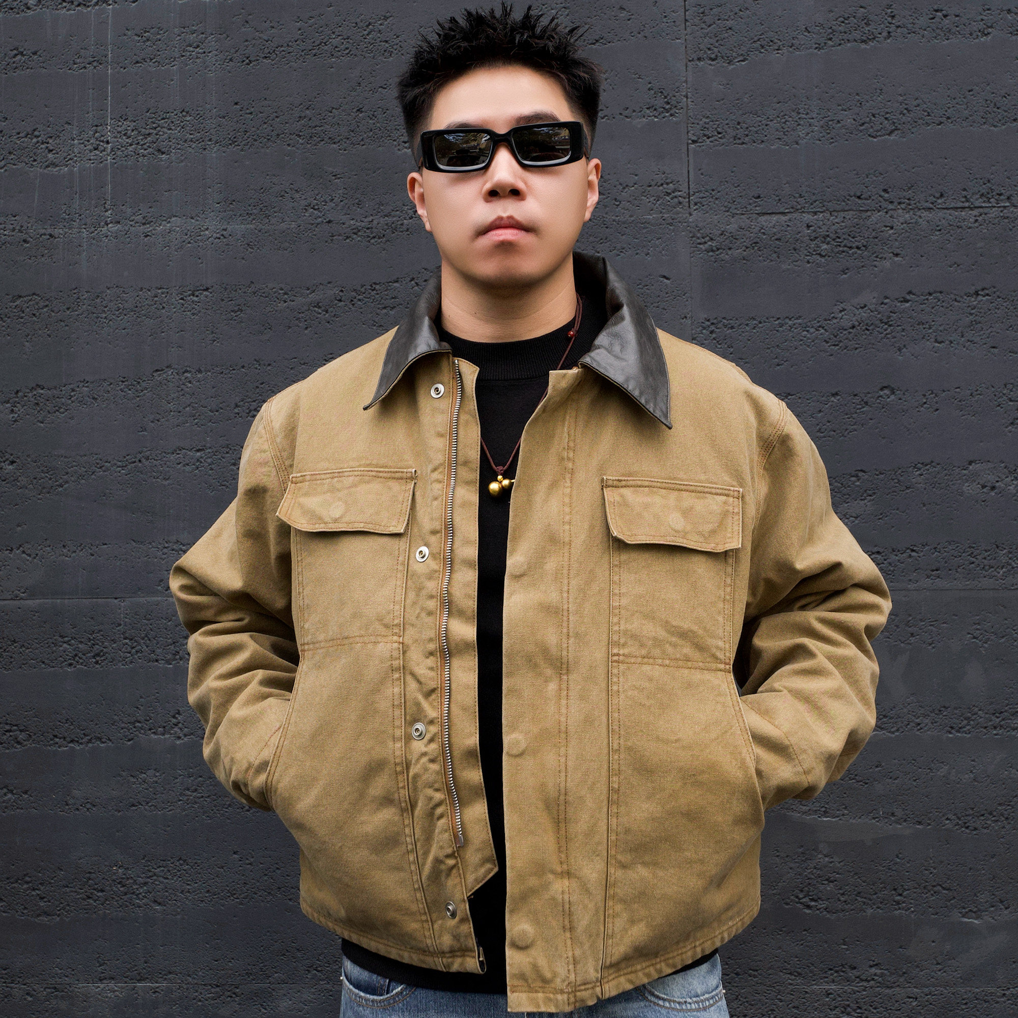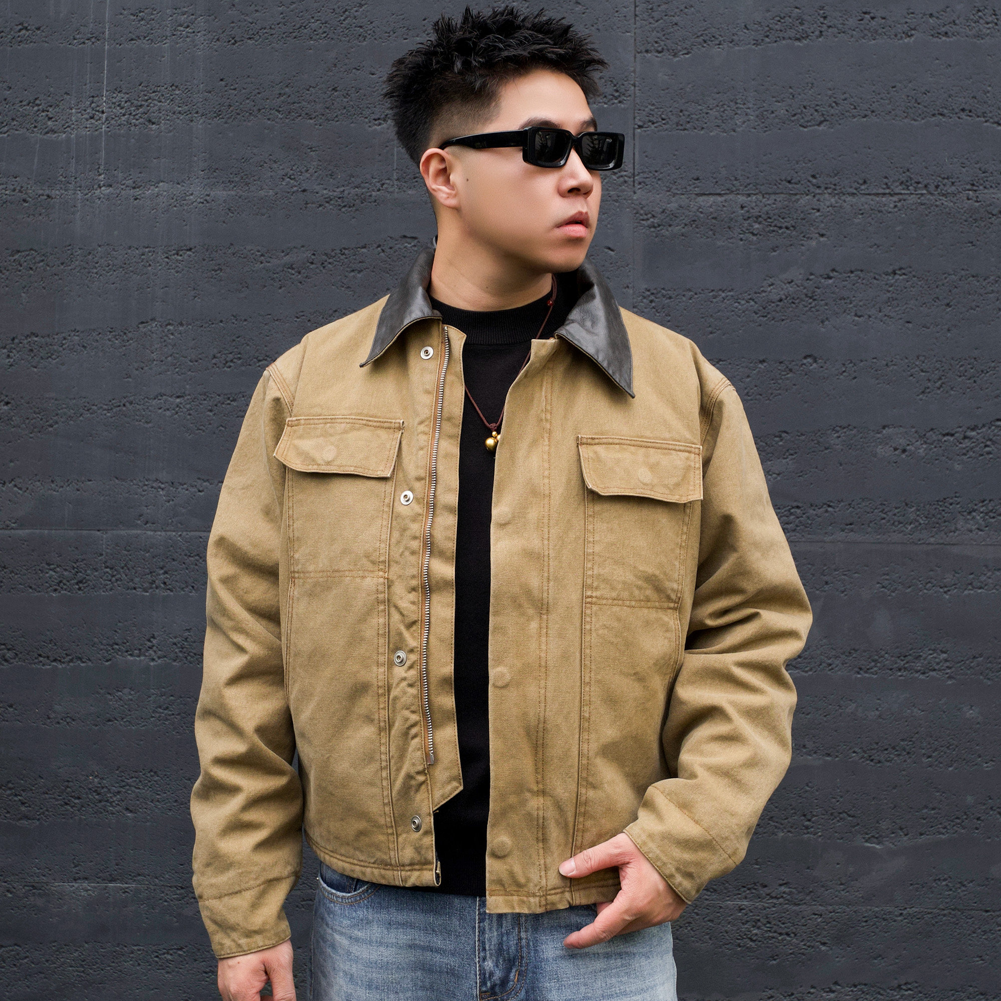 JDKZ美式复古机车巴恩风工装外套男女痞帅休闲百搭底特律夹棉夹克