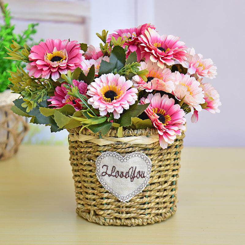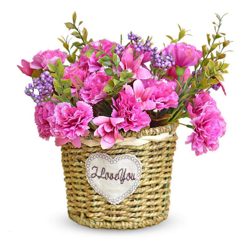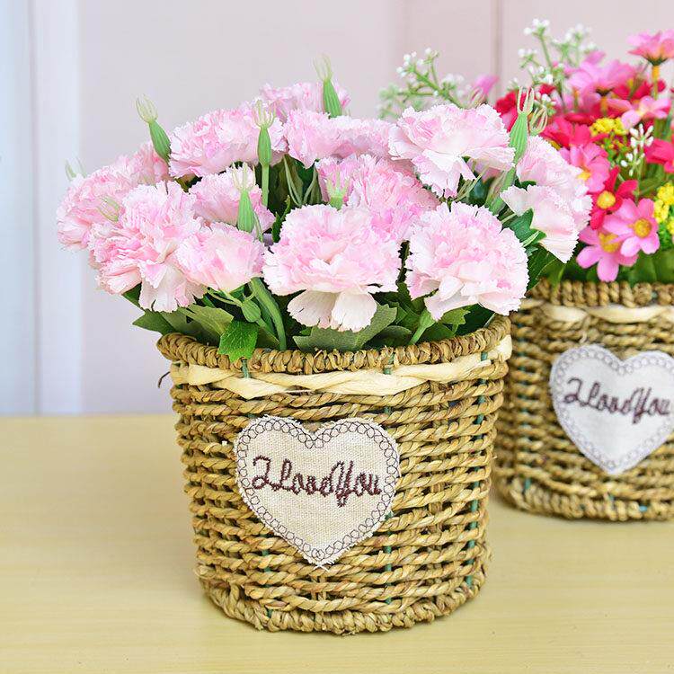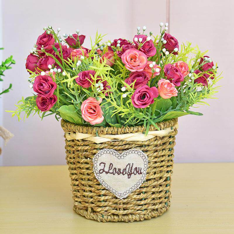 彷真花束客厅卧室桌面摆件摆设装饰假花绢花玫瑰干花手工花篮套装