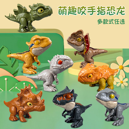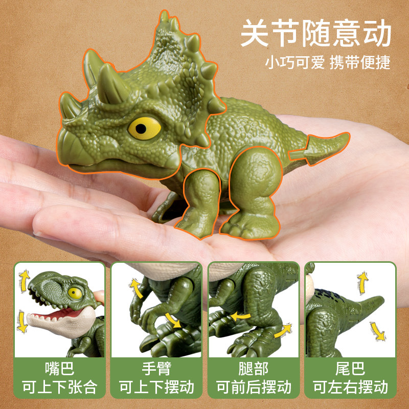 网红爆款咬手指恐龙玩具男孩迷你霸王龙关节可动小恐龙儿童三角龙