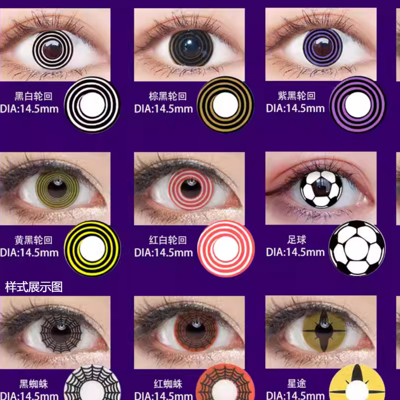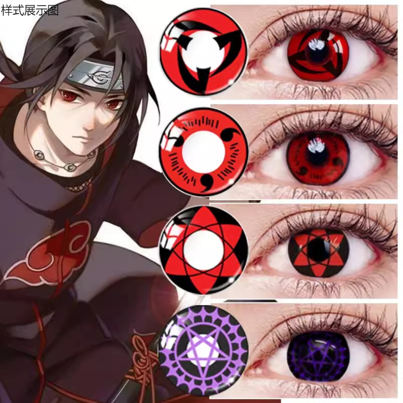 cosplay美瞳黑红白血轮眼轮回红紫契约血丝旗写轮眼隐形眼镜tu
