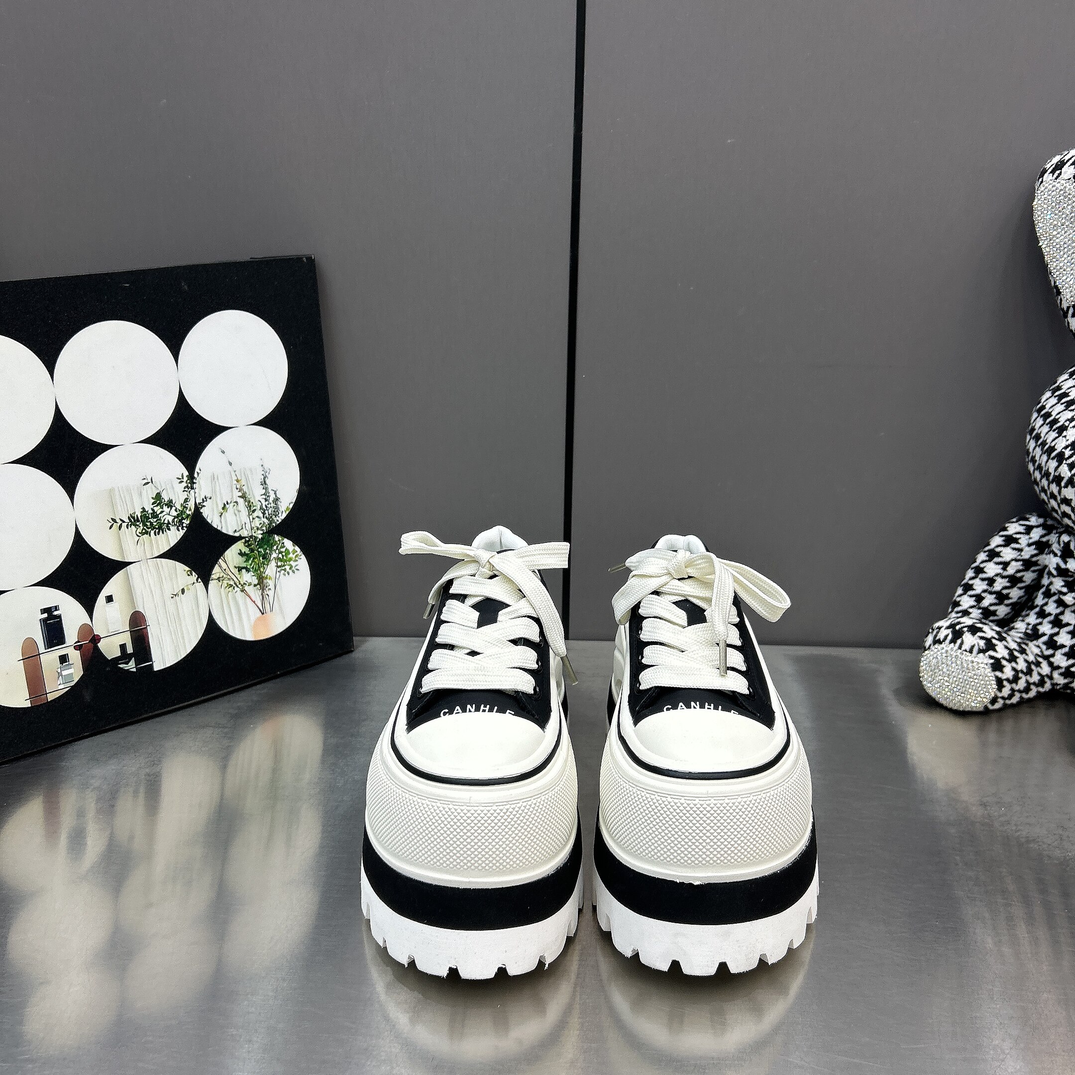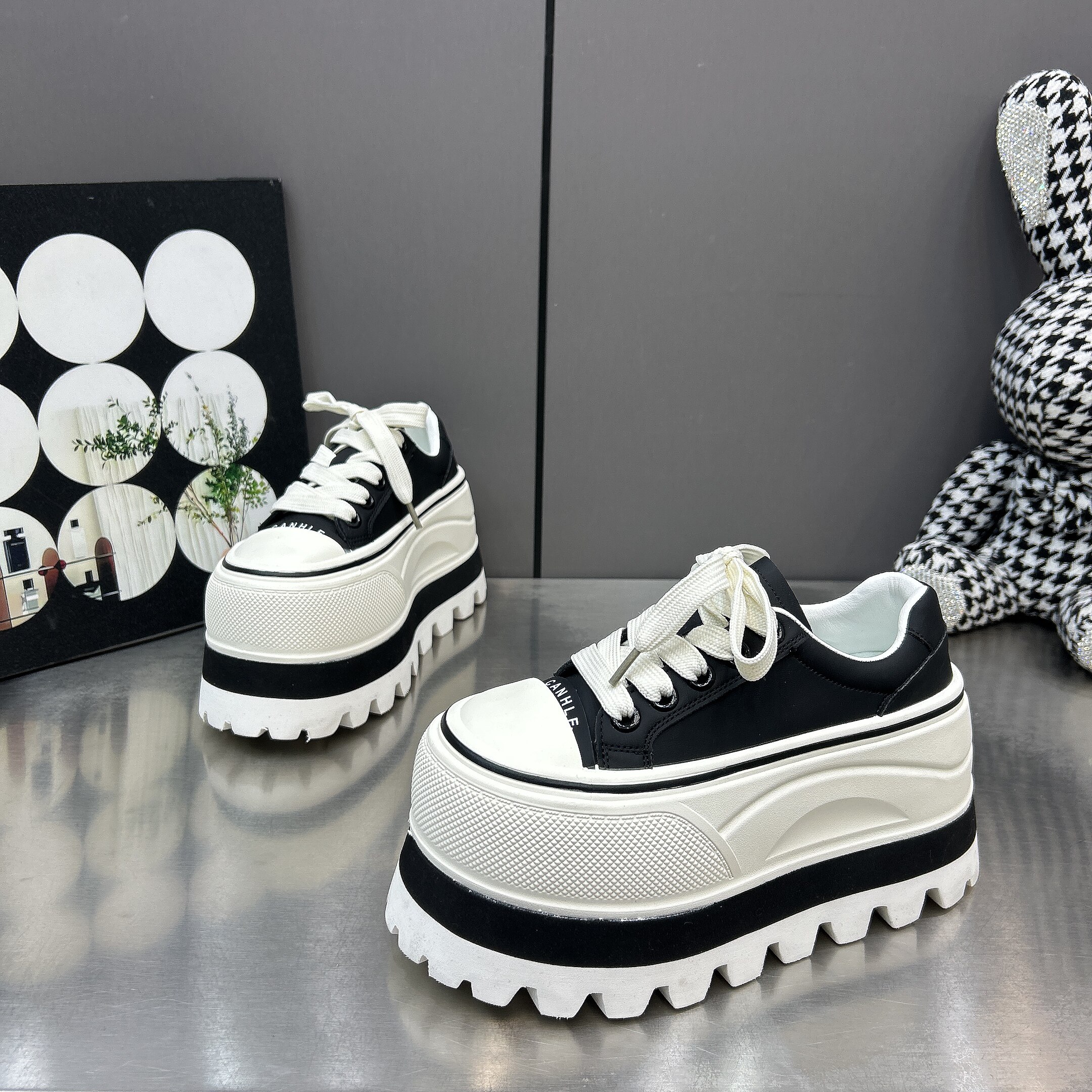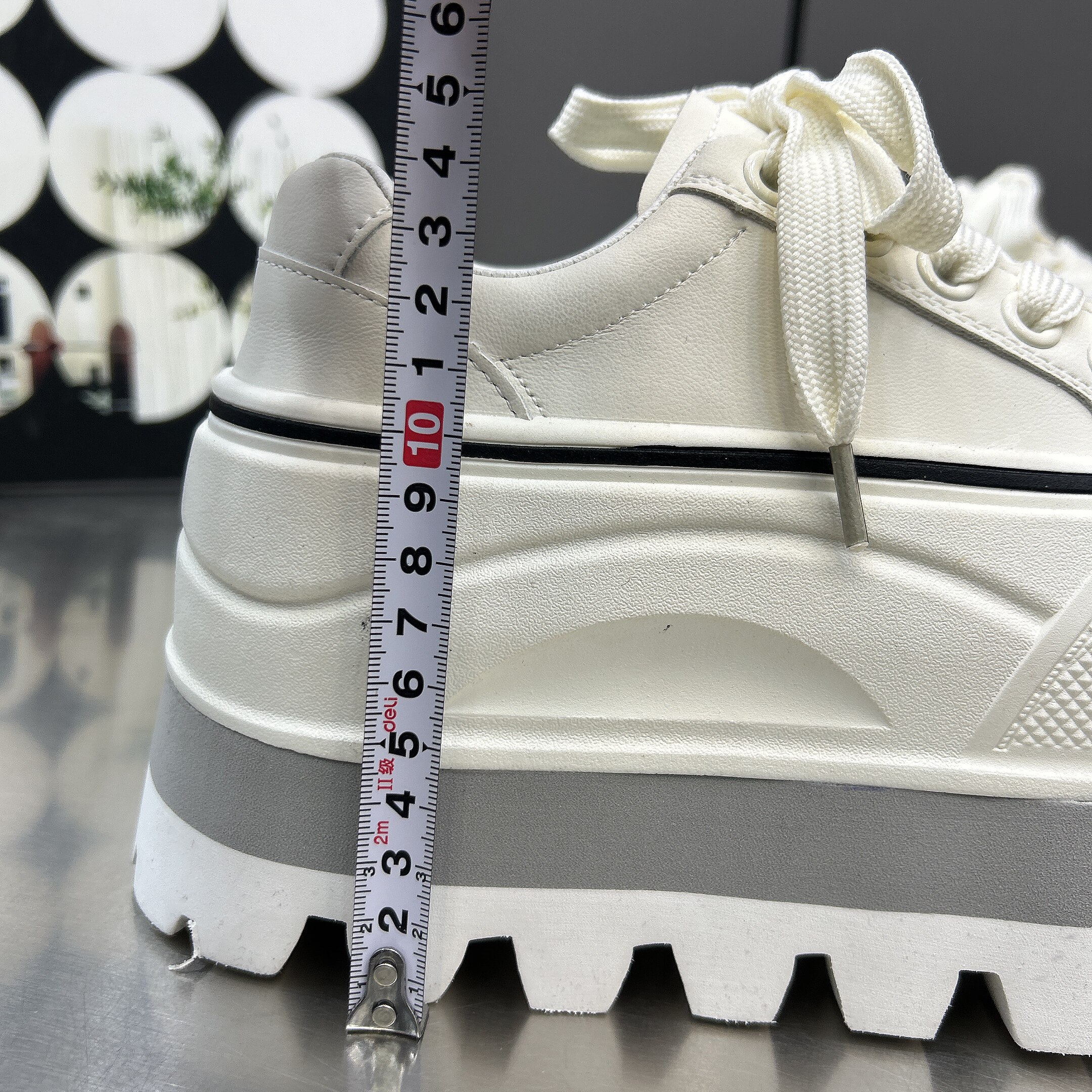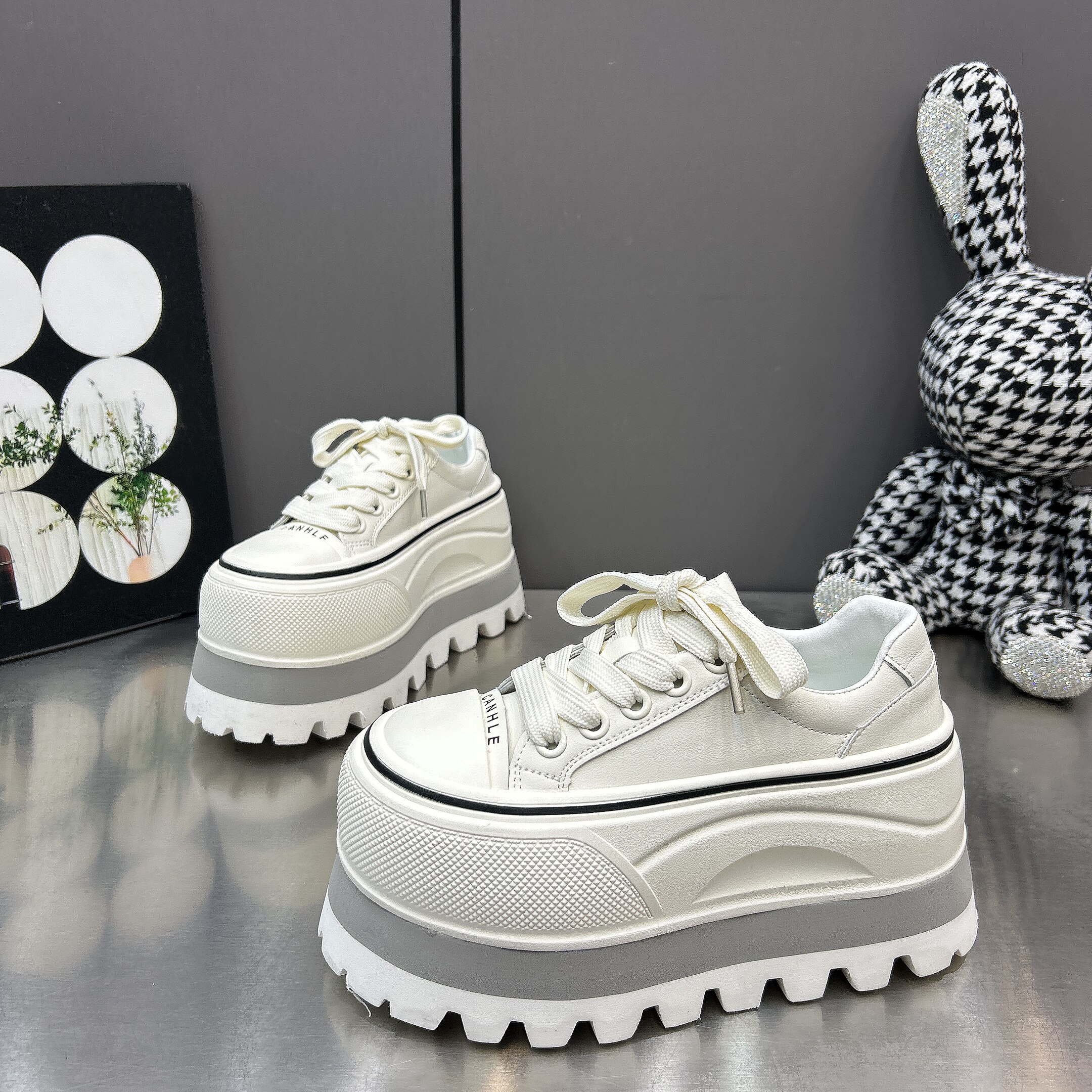 超轻超高跟10cm小白鞋2026新款厚底增高松糕鞋圆头系带休闲鞋单鞋