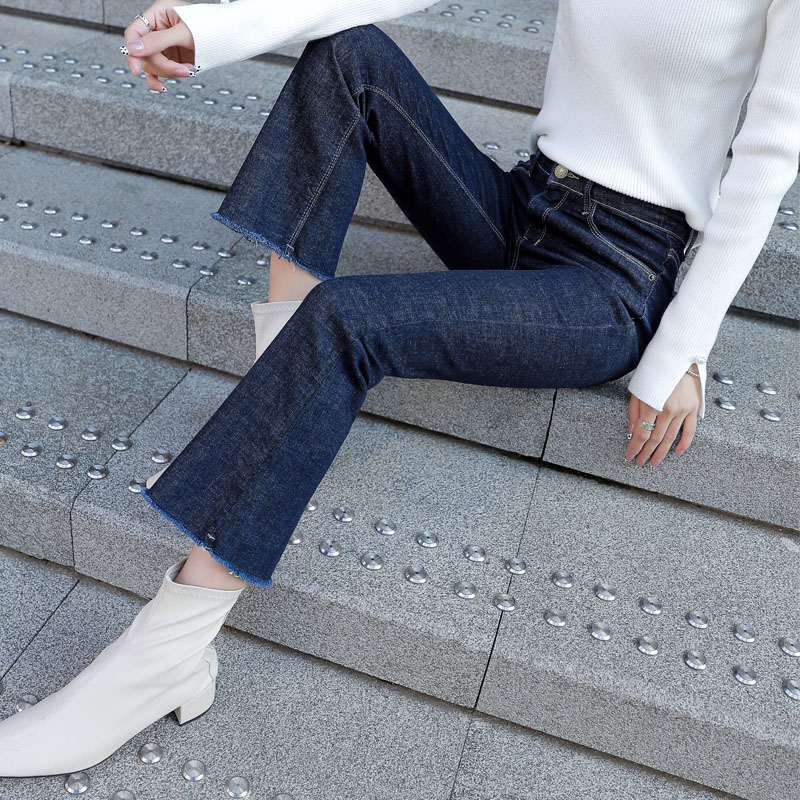 深蓝色微喇叭牛仔裤女2025春秋新款高腰小个子八九分宽松显瘦长裤