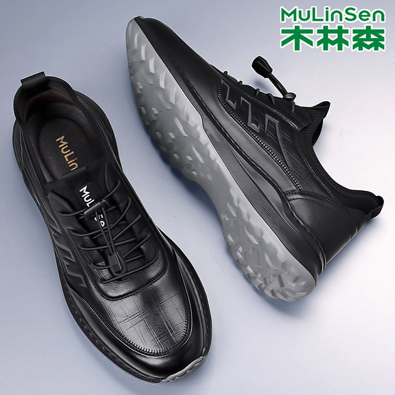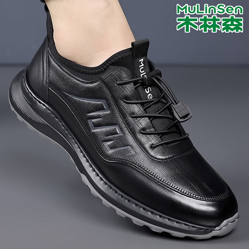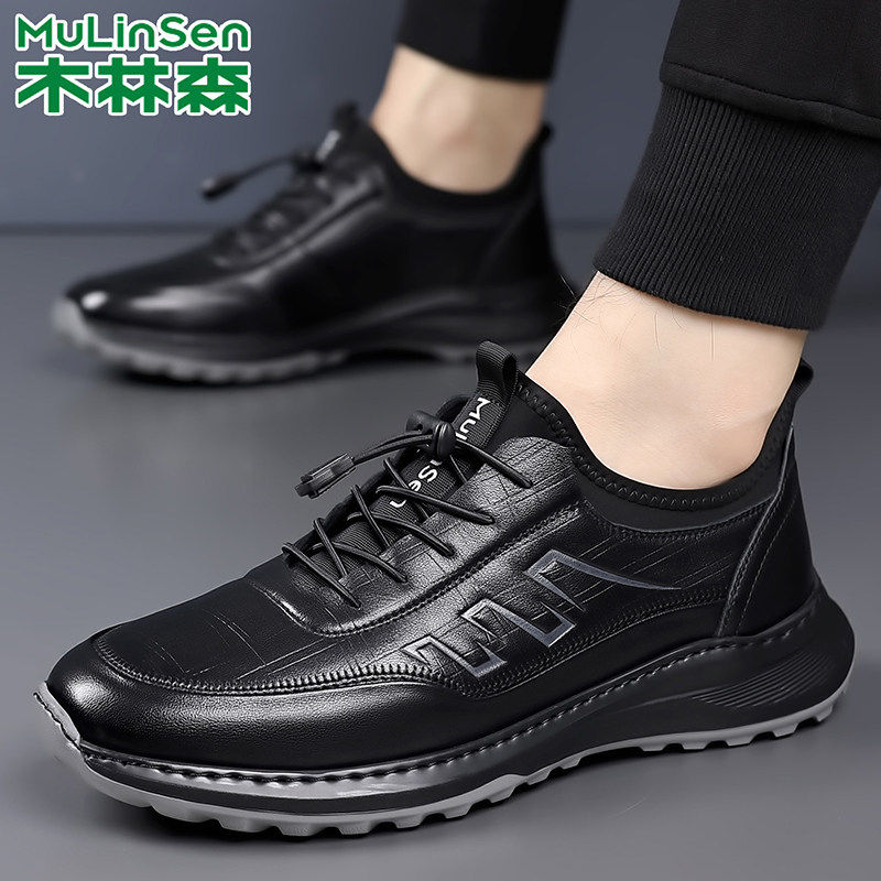 木林森男鞋2025秋冬新款真皮软底透气防滑男士运动鞋跑步休闲皮鞋