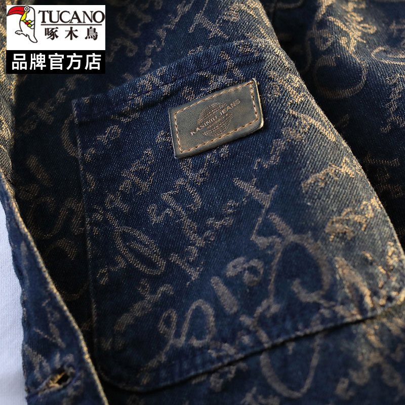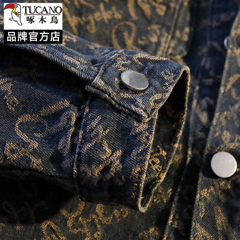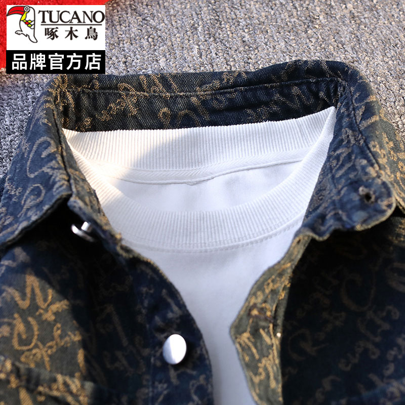 啄木鸟2025新款春秋季牛仔外套男士潮流休闲百搭翻领工装夹克上衣