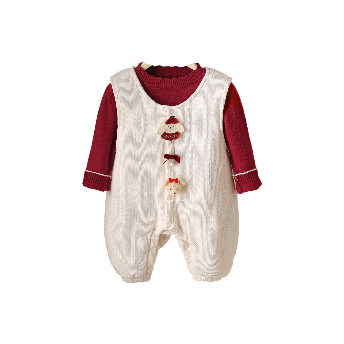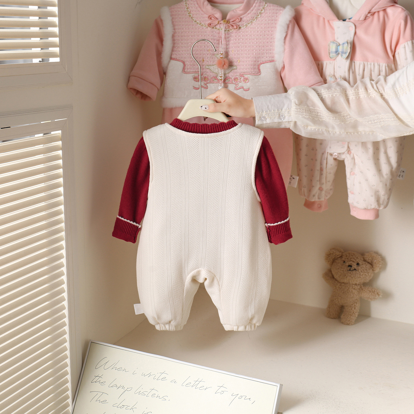 婴儿秋冬套装满月百天女宝宝可爱毛衣连体衣针织上衣背带裤两件套