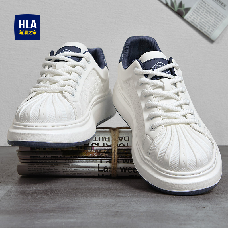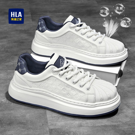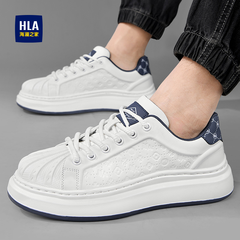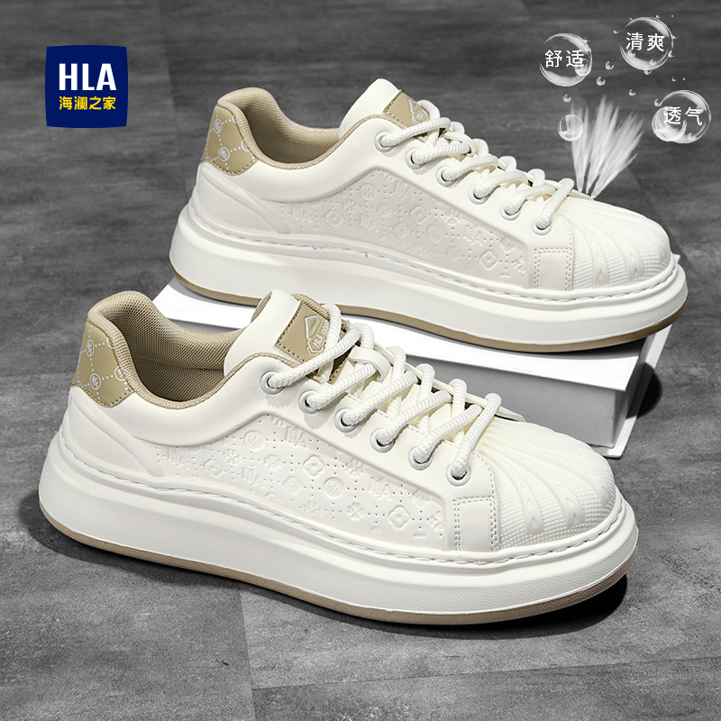 海澜之家男鞋夏季透气2025新款贝壳头小白鞋男士厚底增高休闲板鞋