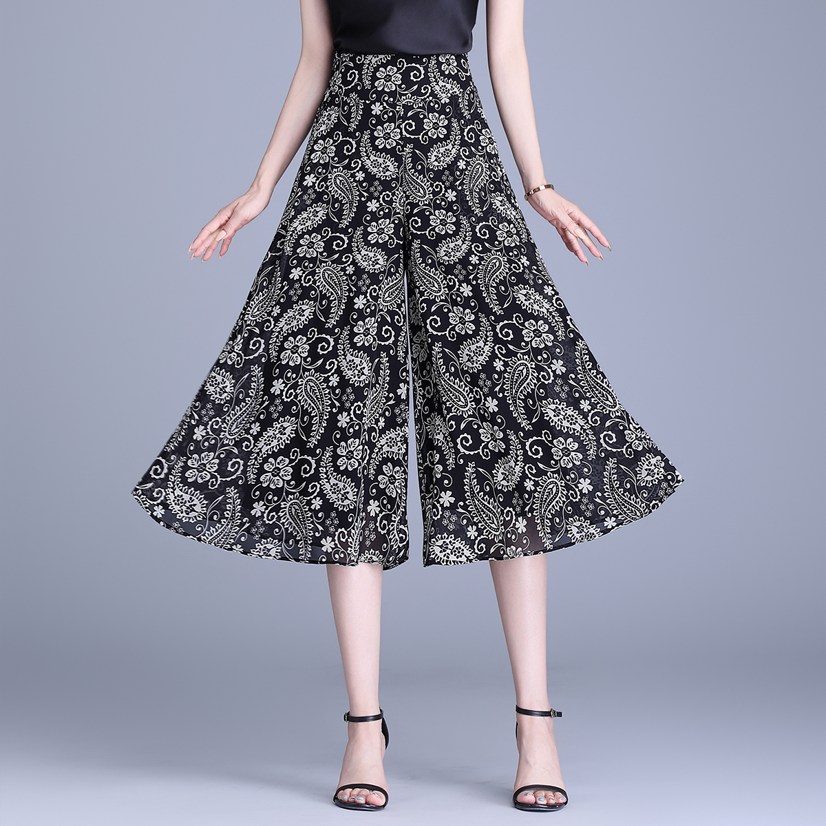 印花阔腿裤女夏季薄款裙裤2025新款高腰垂感七分裤裙宽松休闲裤子