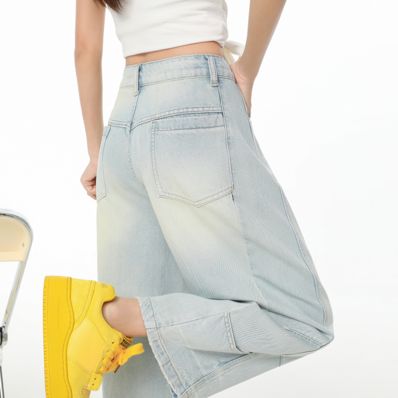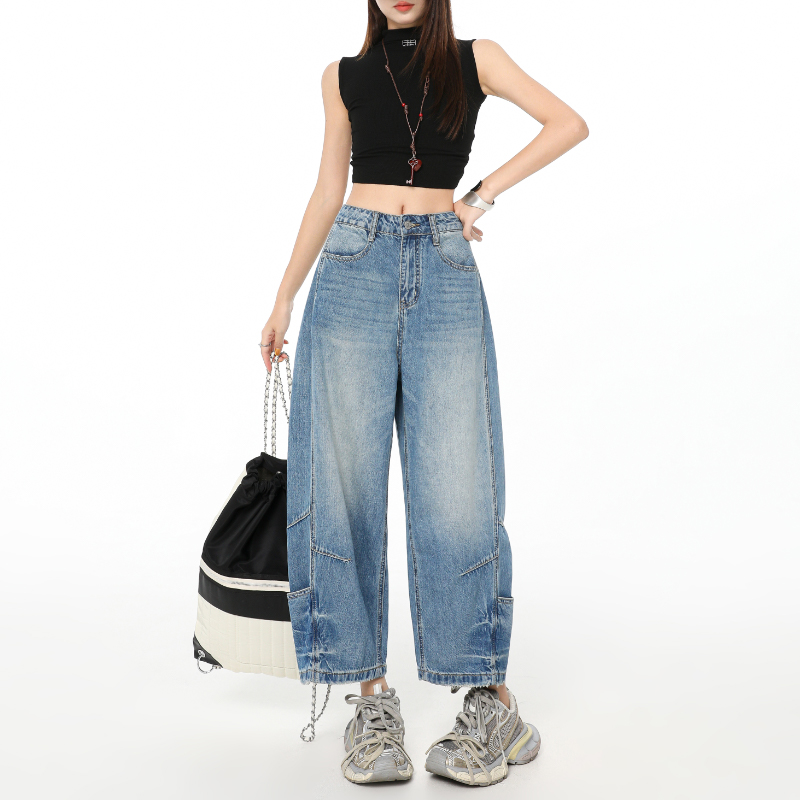 高腰天丝阔腿牛仔裤女夏季薄款2025新款宽松显瘦九分弯刀气球裤子