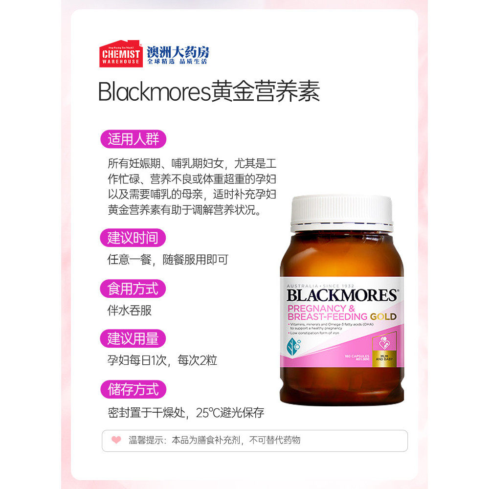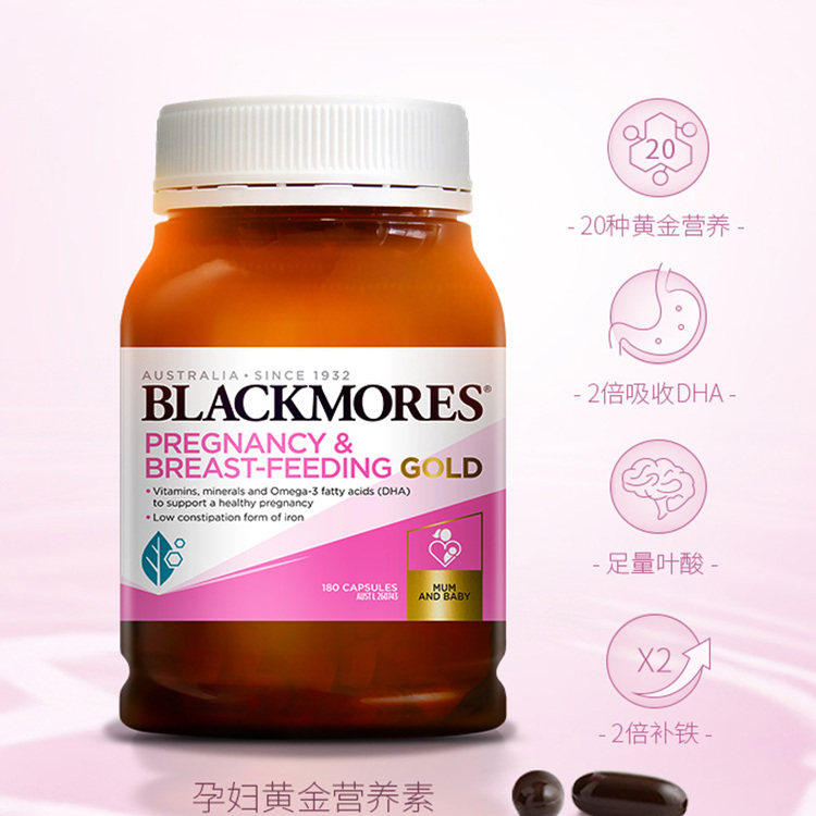 Blackmores澳佳宝孕妇黄金营养素孕期复合维生素叶酸dha180粒*2瓶
