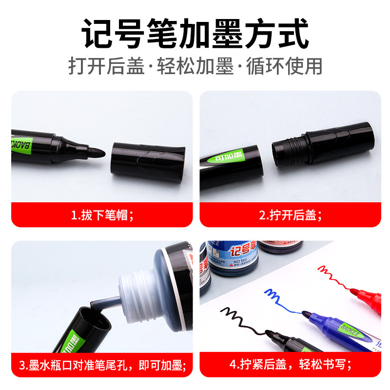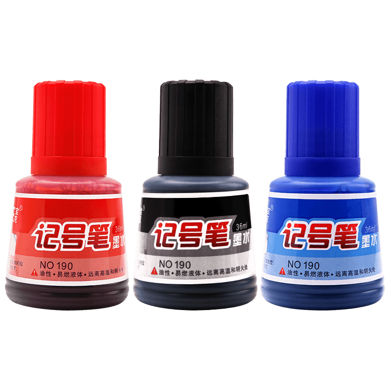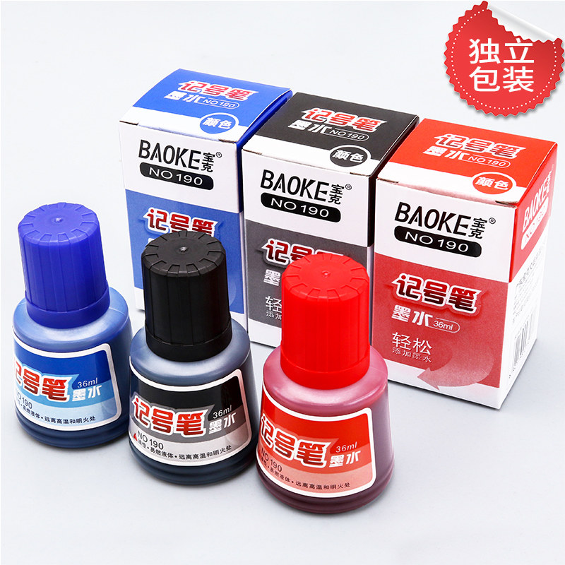 宝克记号笔NO190墨水补充液油性大头笔勾线批发黑色红色蓝色防水大容量36ML油性笔填充液马克笔添加水批发