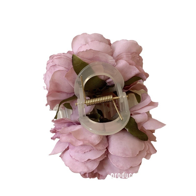 新中式复古牡丹花抓夹气质甜美森系仿真花朵鲨鱼夹后脑勺盘发夹女