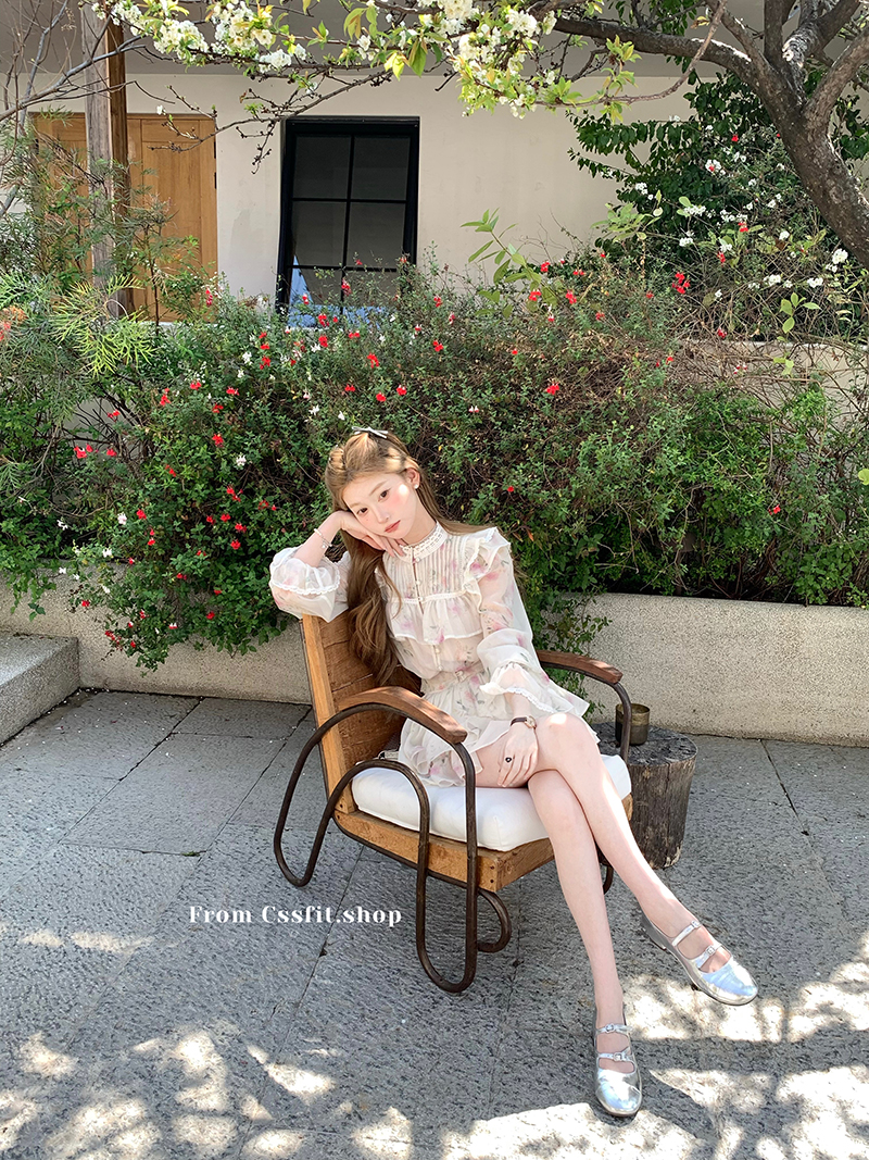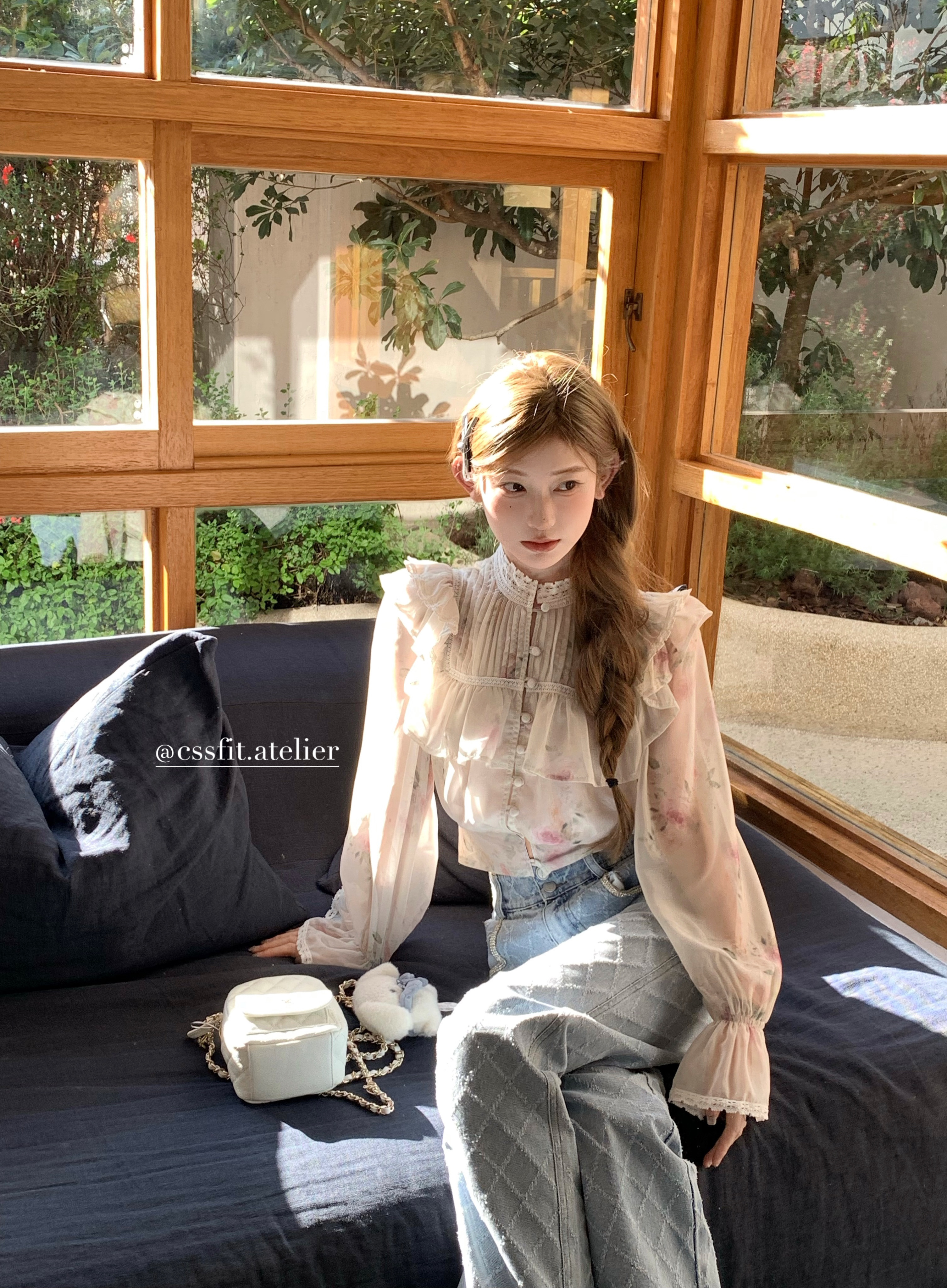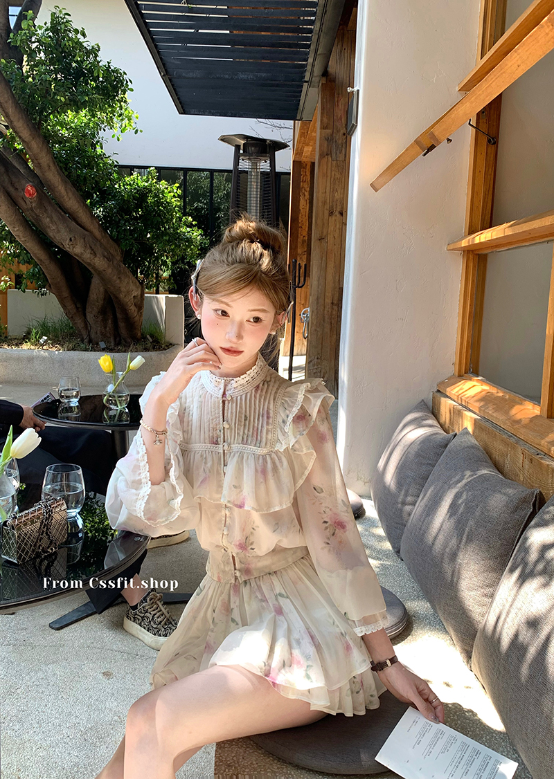 迟伞伞 花落胭脂 轻中式刺绣蕾丝古风碎花衬衫半身裙套装女春秋