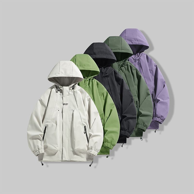 户外登山服防水夹克男士2025秋冬季新款潮流风衣连帽简约外套百搭