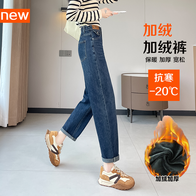 哈伦牛仔裤女冬加绒保暖高腰弹力