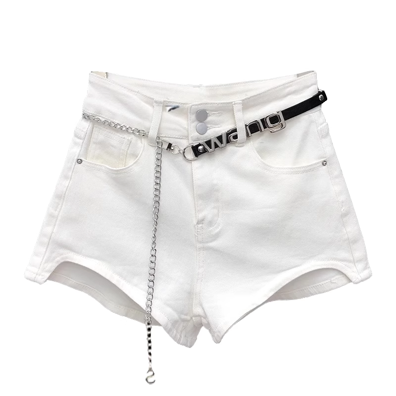 不规则双扣白色牛仔短裤女设计感高腰宽松显瘦a字超短阔腿热裤夏