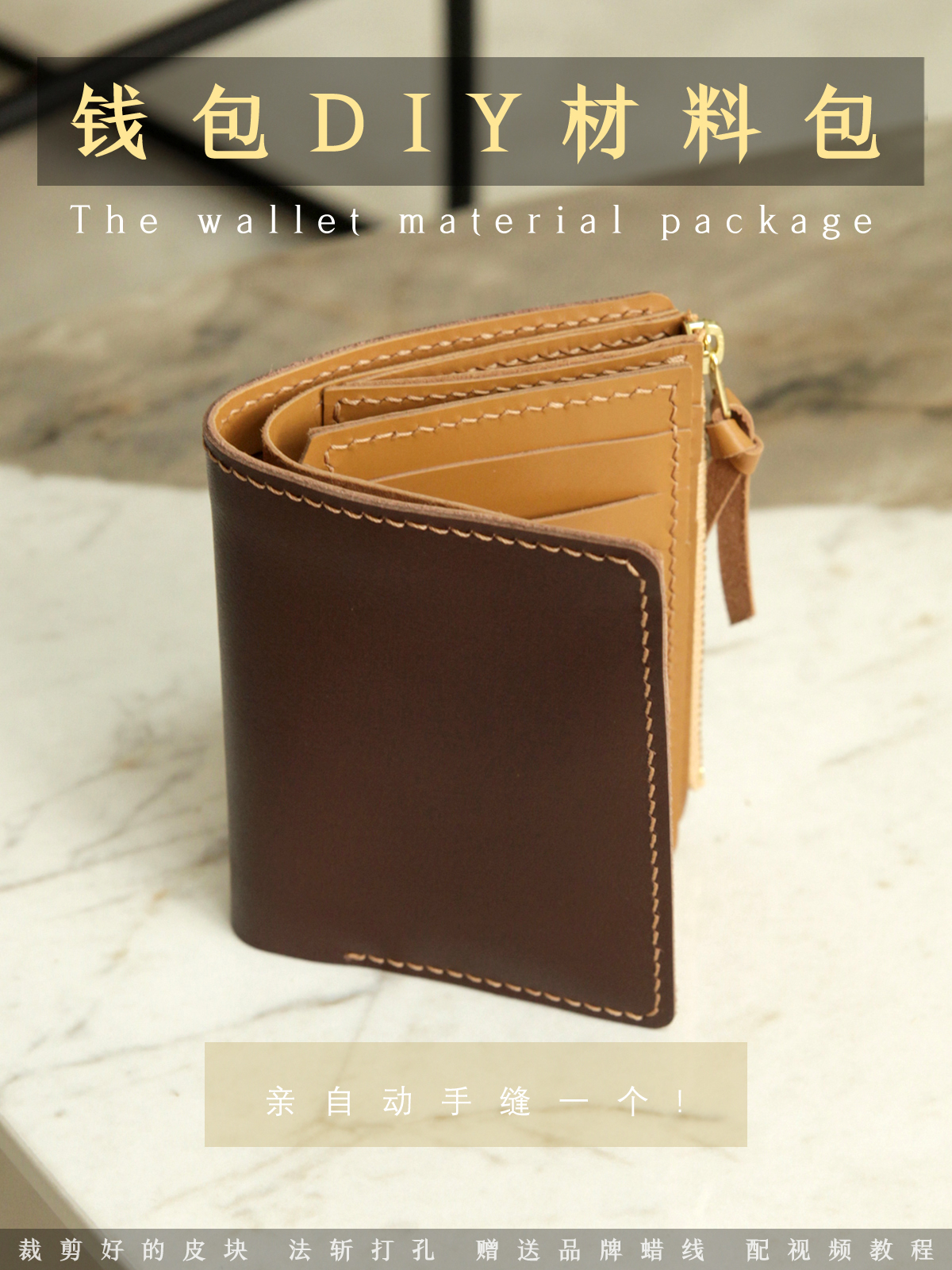 自制钱包diy材料包手工真牛皮拉链银包生日礼物送男朋友老公男生