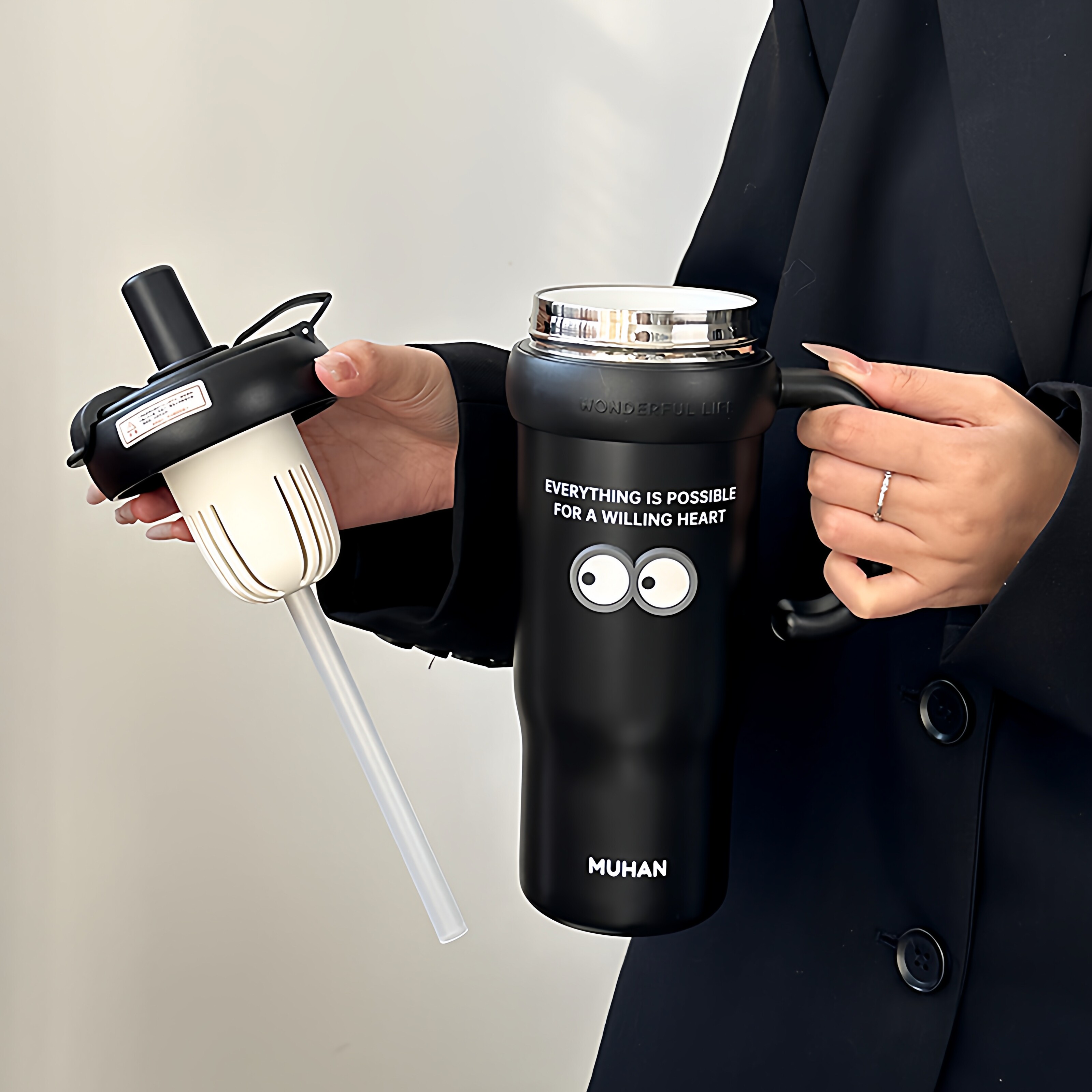 办公室保温杯女生2025新款大容量水杯便携泡茶杯男士车载吸管杯子