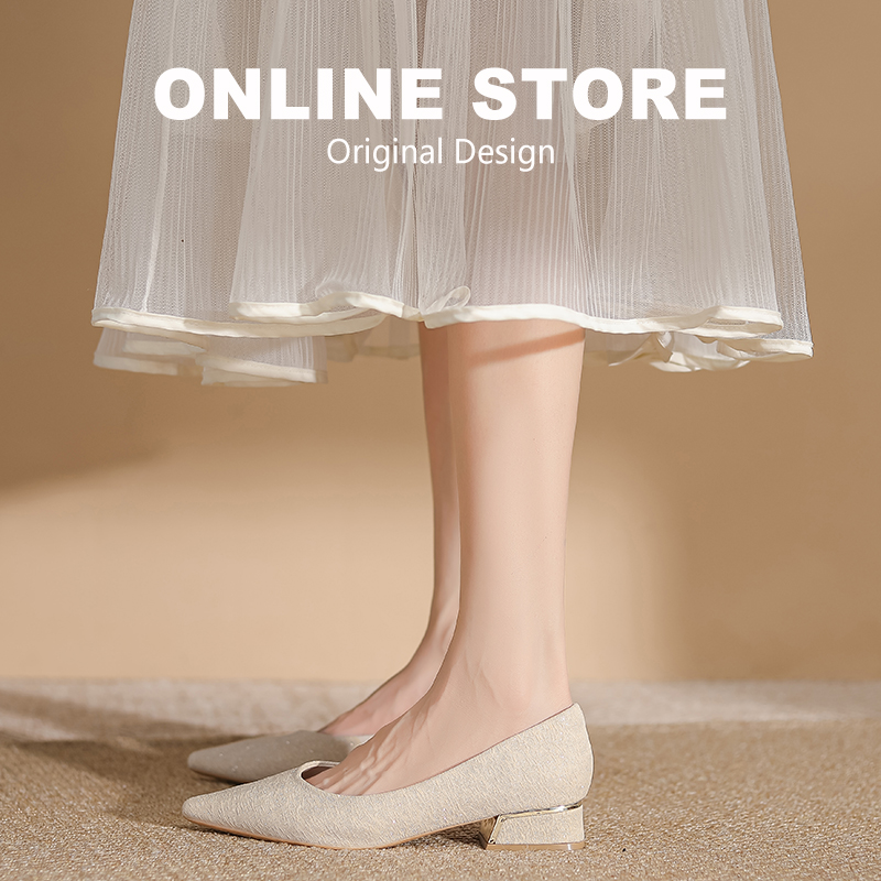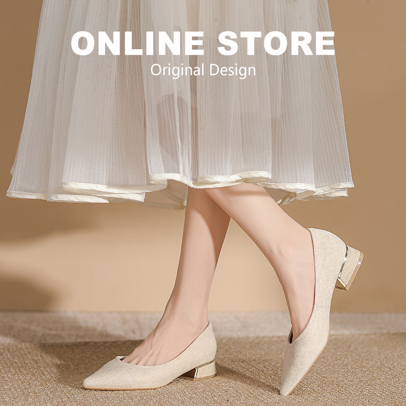 法式不累脚矮跟订婚婚鞋伴娘鞋女鞋2025夏秋平底旗袍皮鞋尖头单鞋