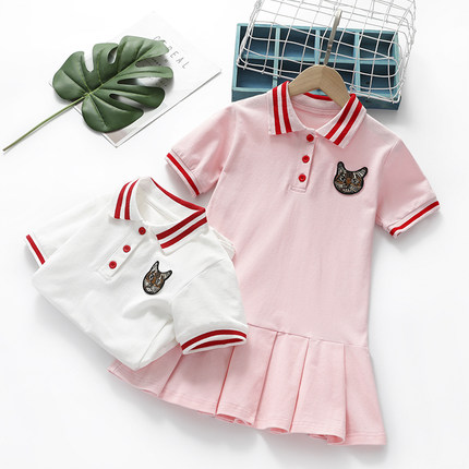 女童连衣裙童装夏装2023洋气宝宝polo裙衫中小儿童纯棉短袖裙子潮
