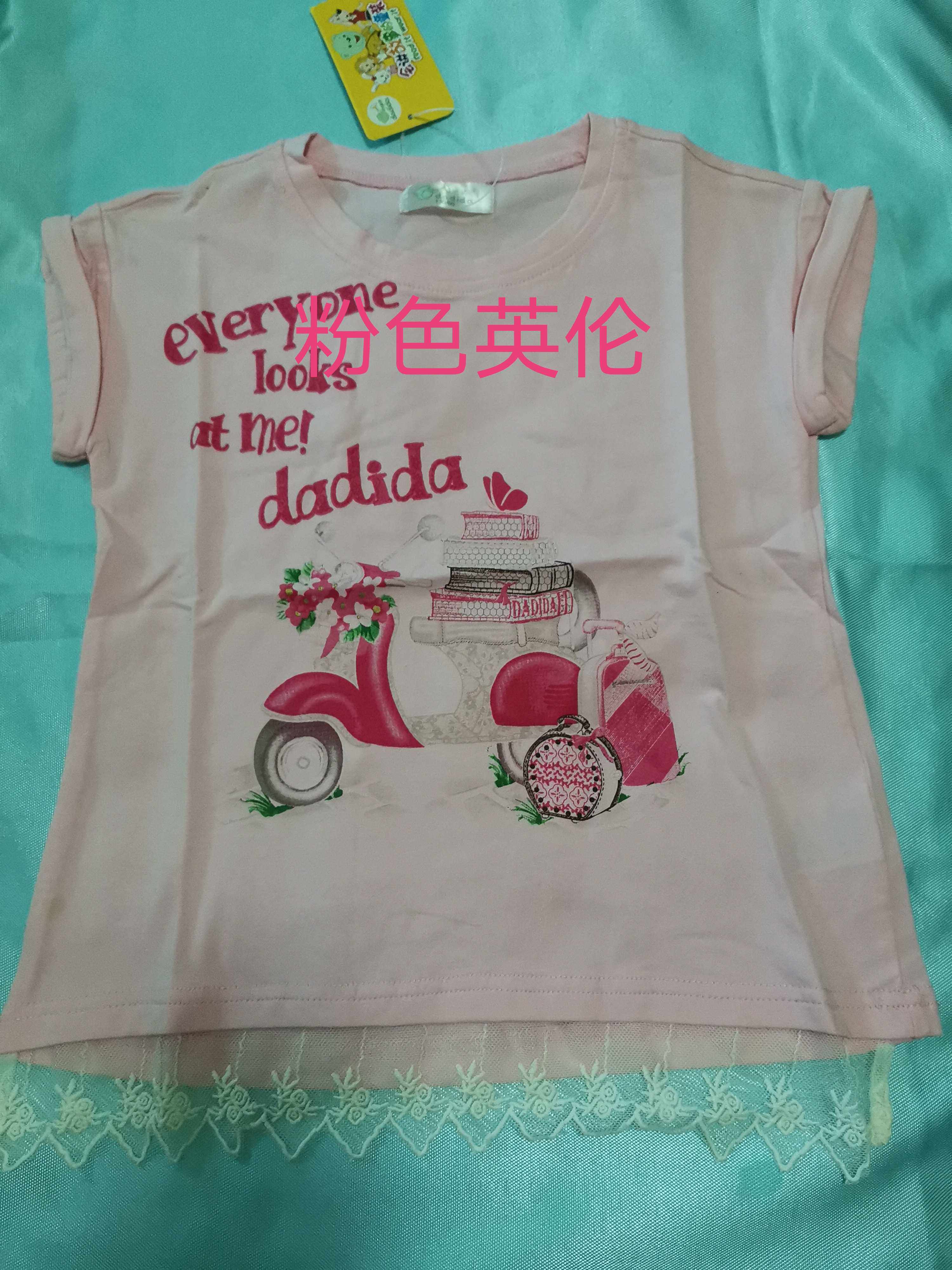 嗒嘀嗒童装女童上衣2018夏装新款中大童弹力色织汗布T恤