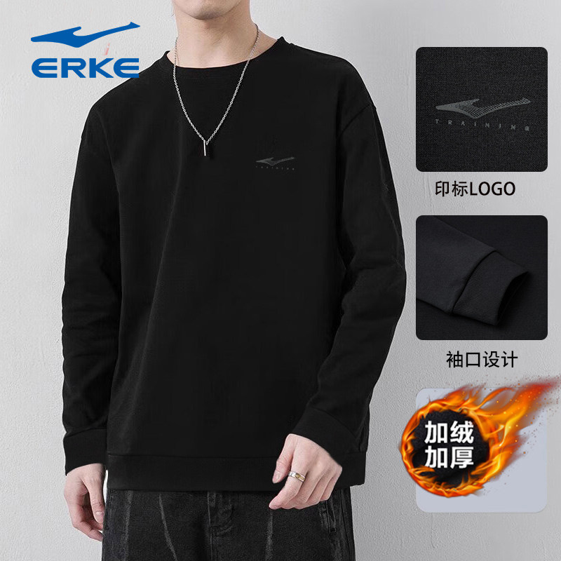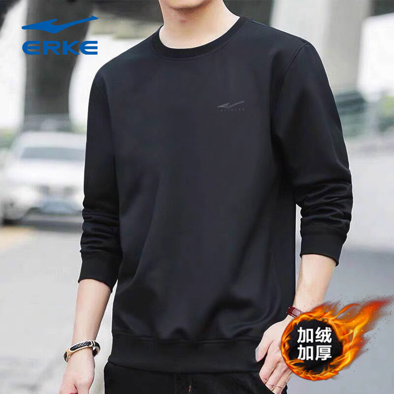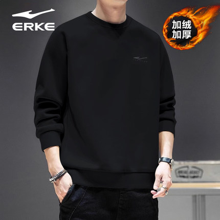 鸿星尔克加绒卫衣男冬季运动衣针织套头上衣2025新款男装秋冬外套