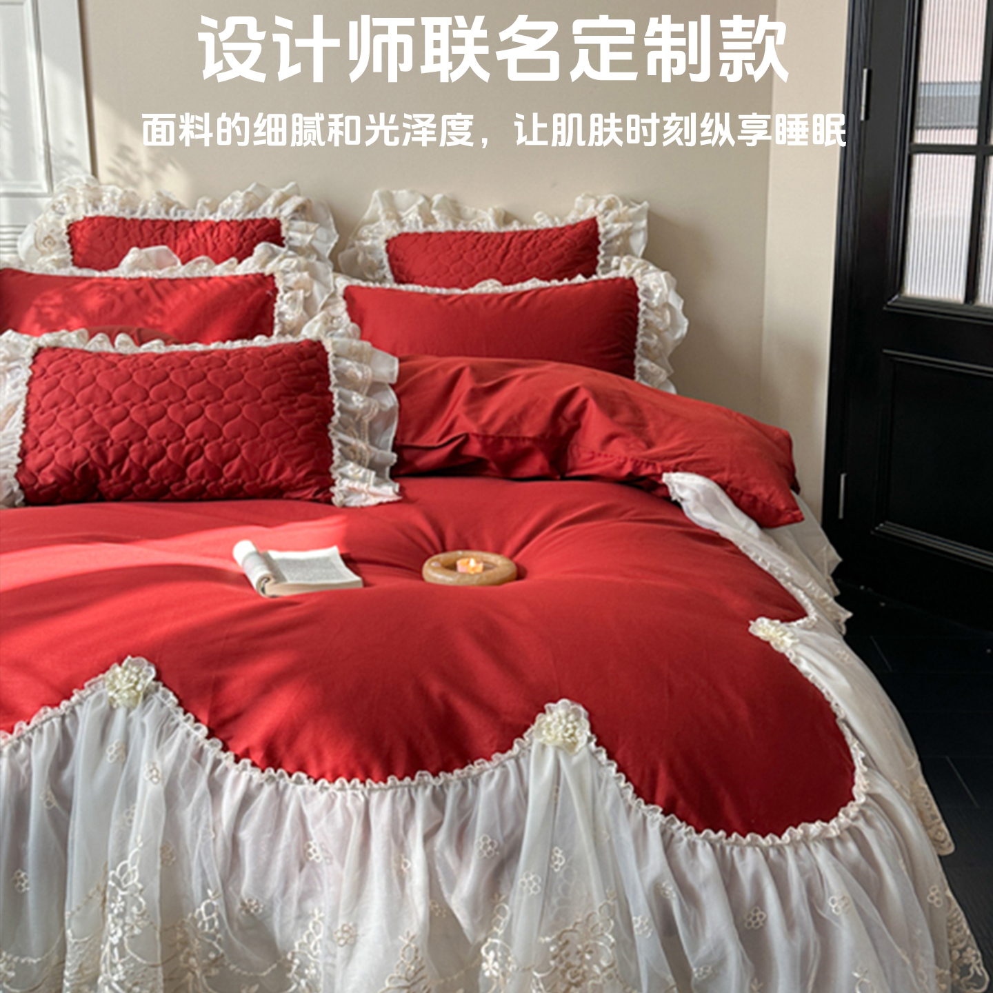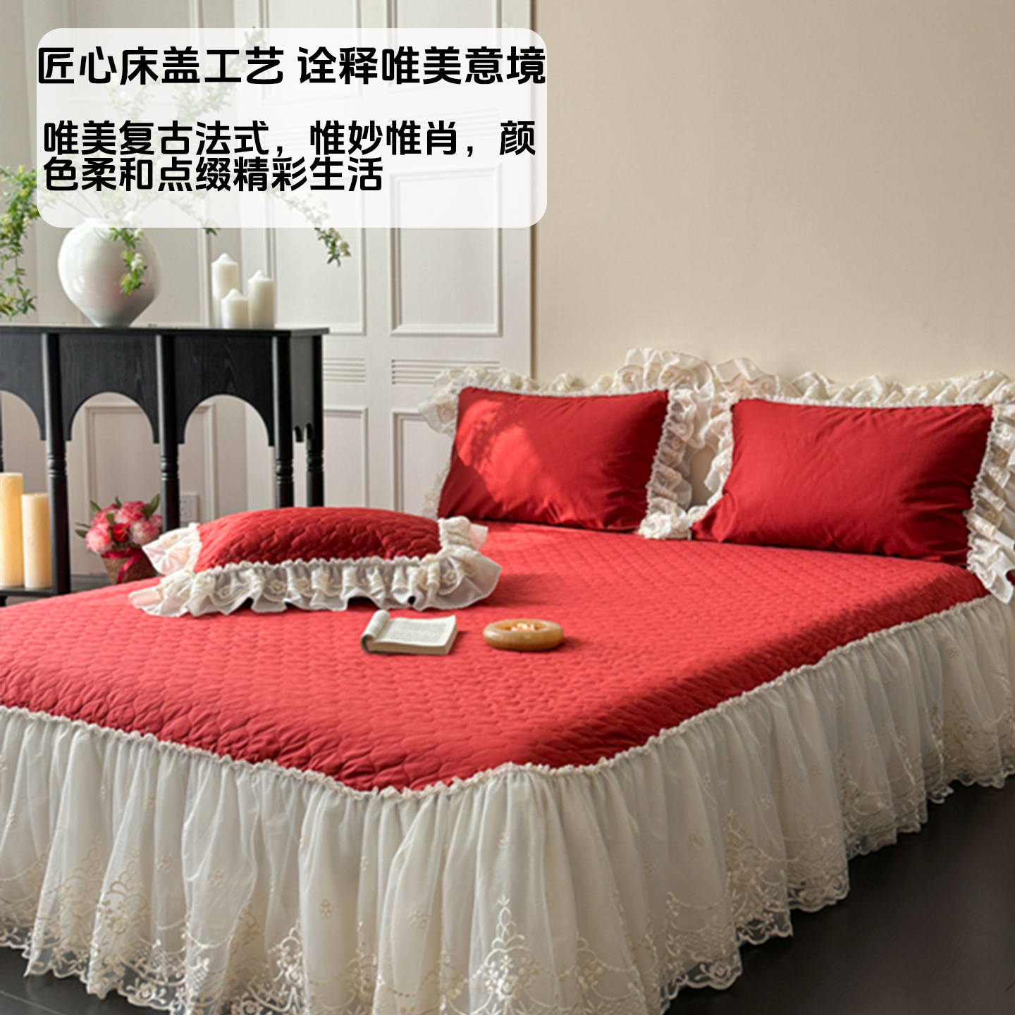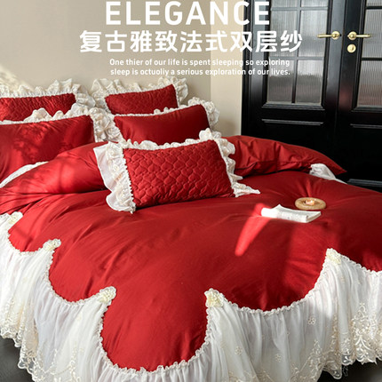 法式床上用品婚庆床盖长绒棉四件套结婚全棉纯棉磨毛高端喜被红色