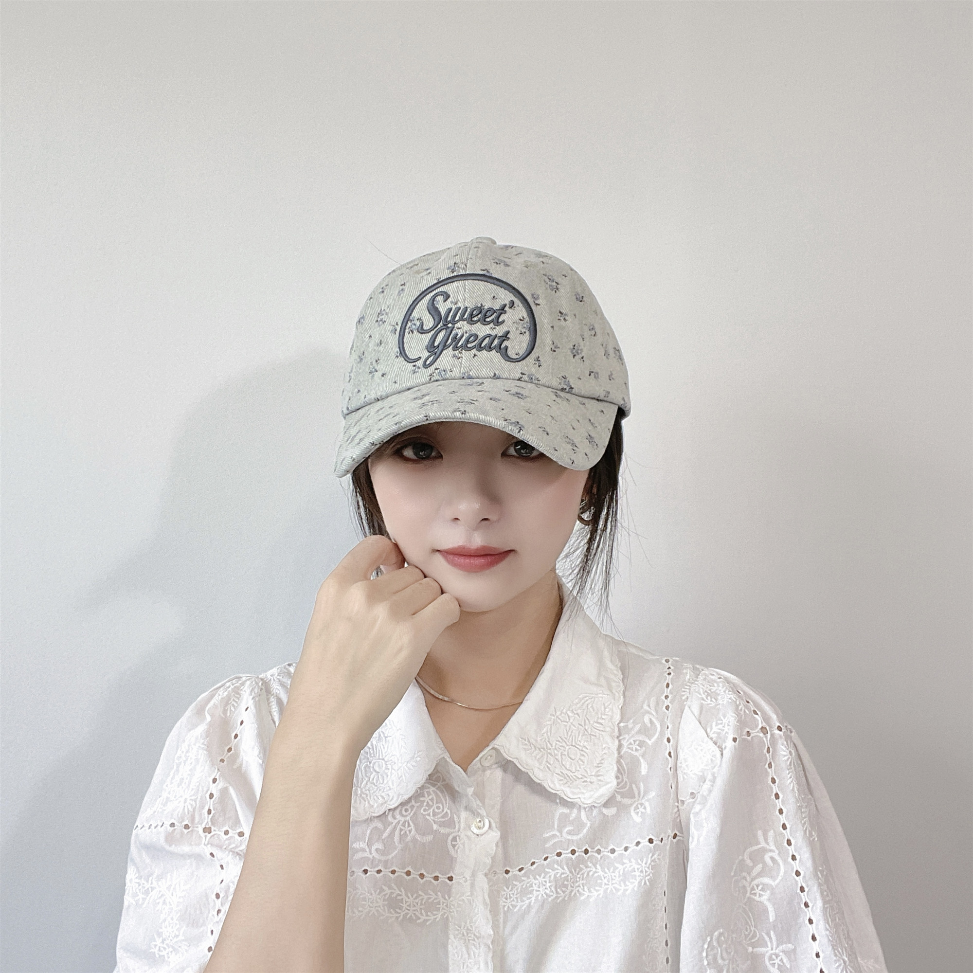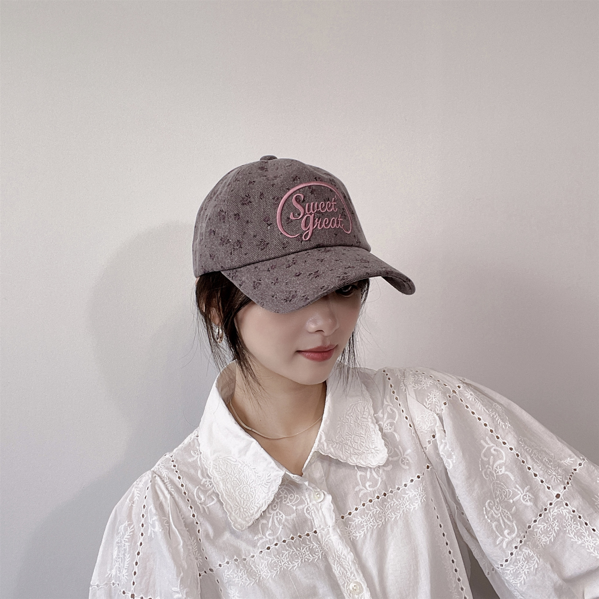 25秋冬新款韩国东大门进口清新小碎花鸭舌帽女立体圆形刺绣棒球帽