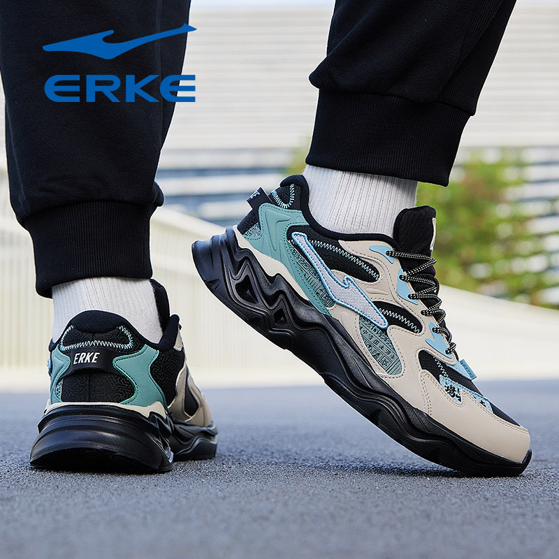 鸿星尔克运动鞋男鞋秋冬季新款防水皮面青少年学生软底休闲老爹鞋